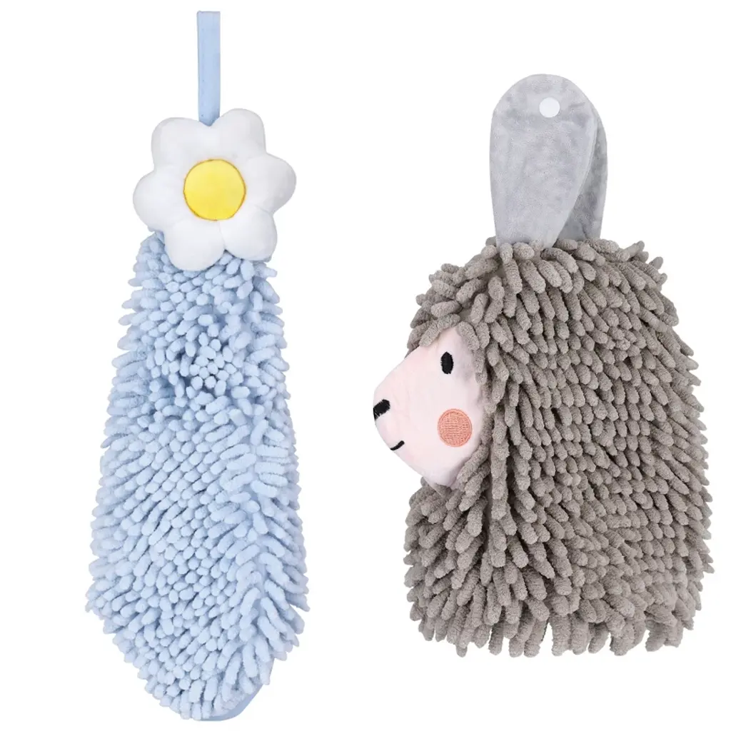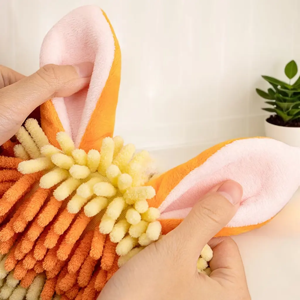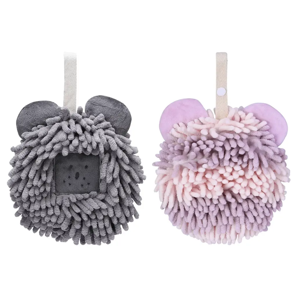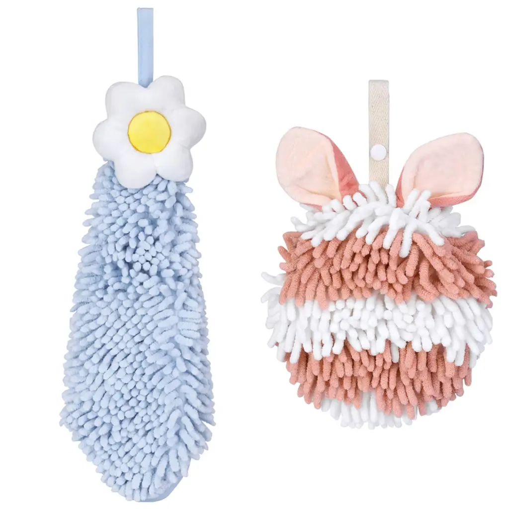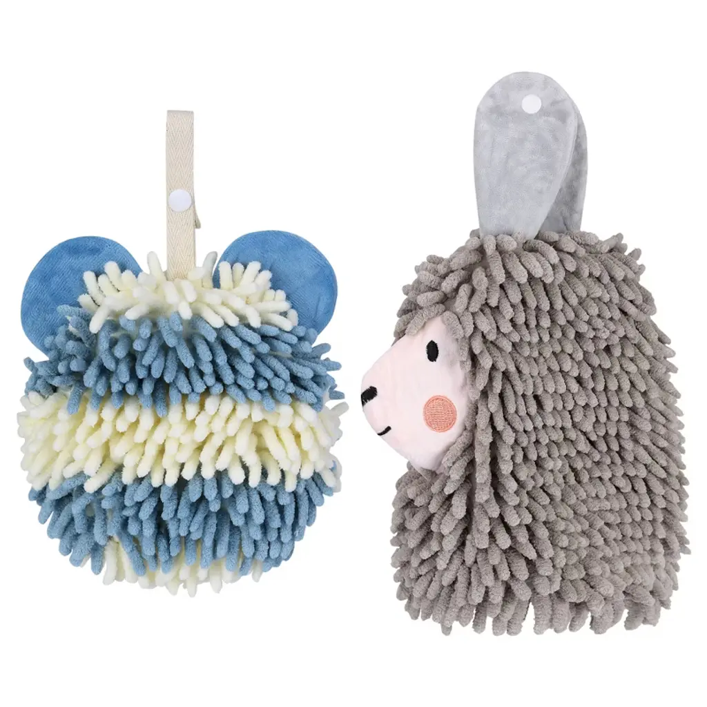 Regalwoven Chenille Fluffy Ball Rabbit Shape Soft Absorbent Quick Drying Hand Towel With Hanging Loop 7" X 7" 1 Pc Blue