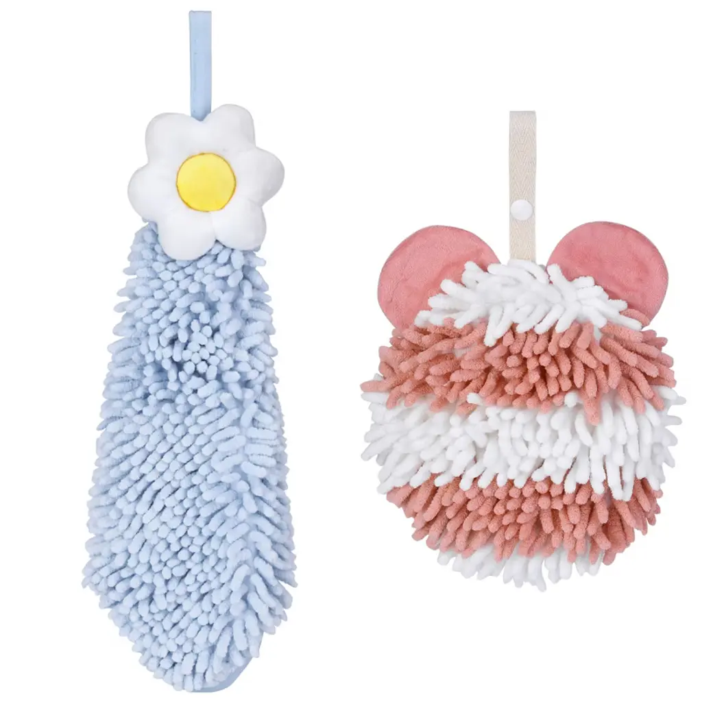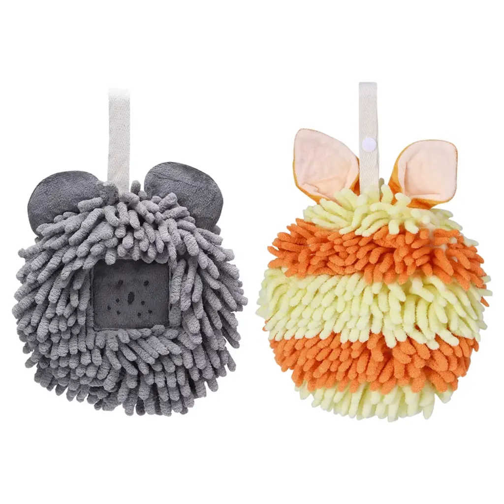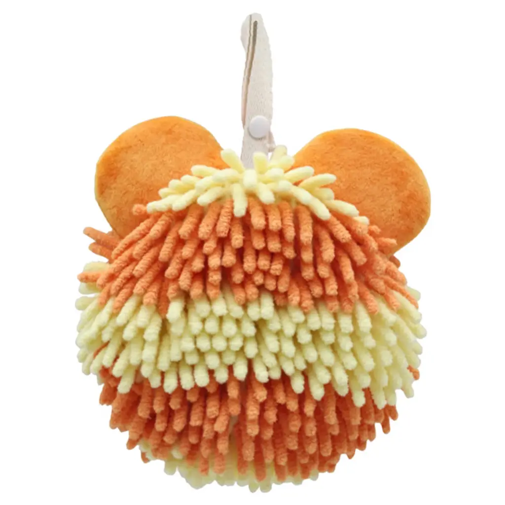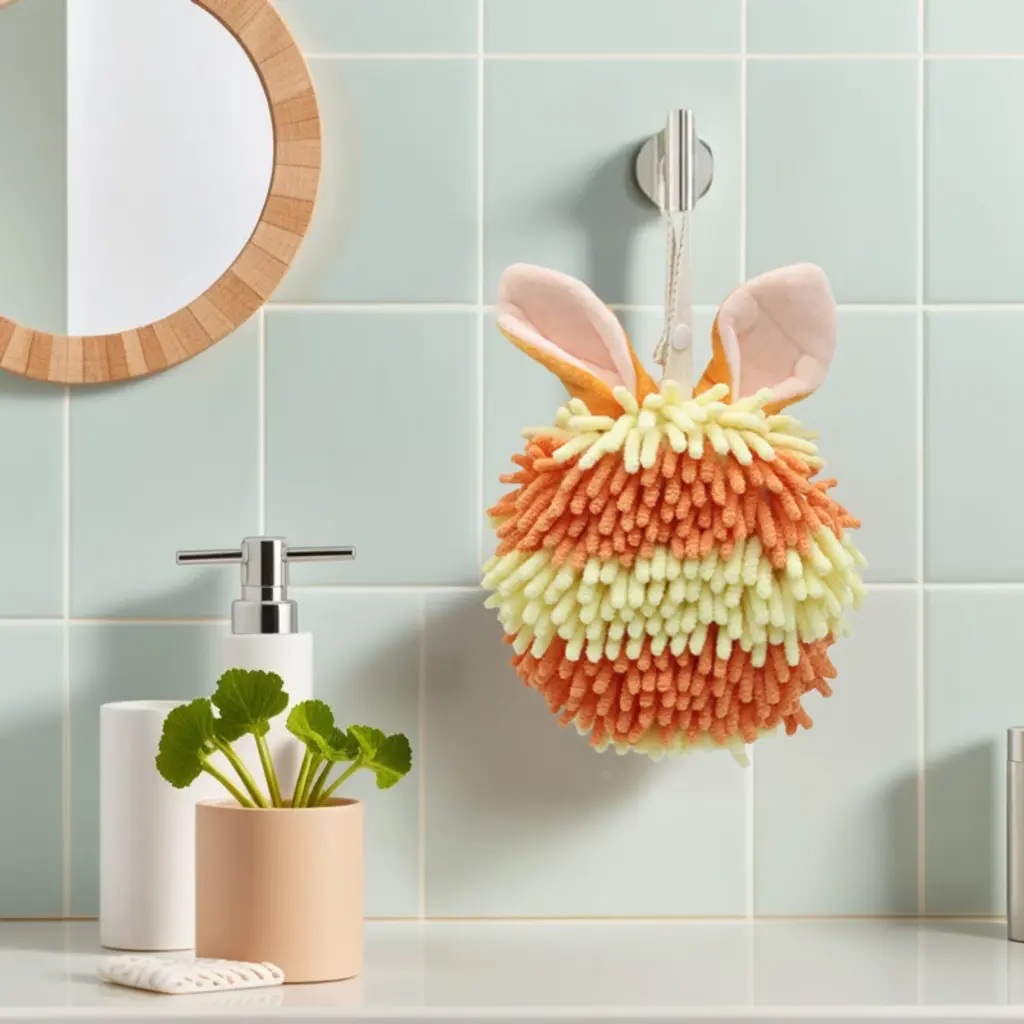 Regalwoven Chenille Fluffy Ball Rabbit Shape Soft Absorbent Quick Drying Hand Towel With Hanging Loop 7" X 7" 1 Pc Orange