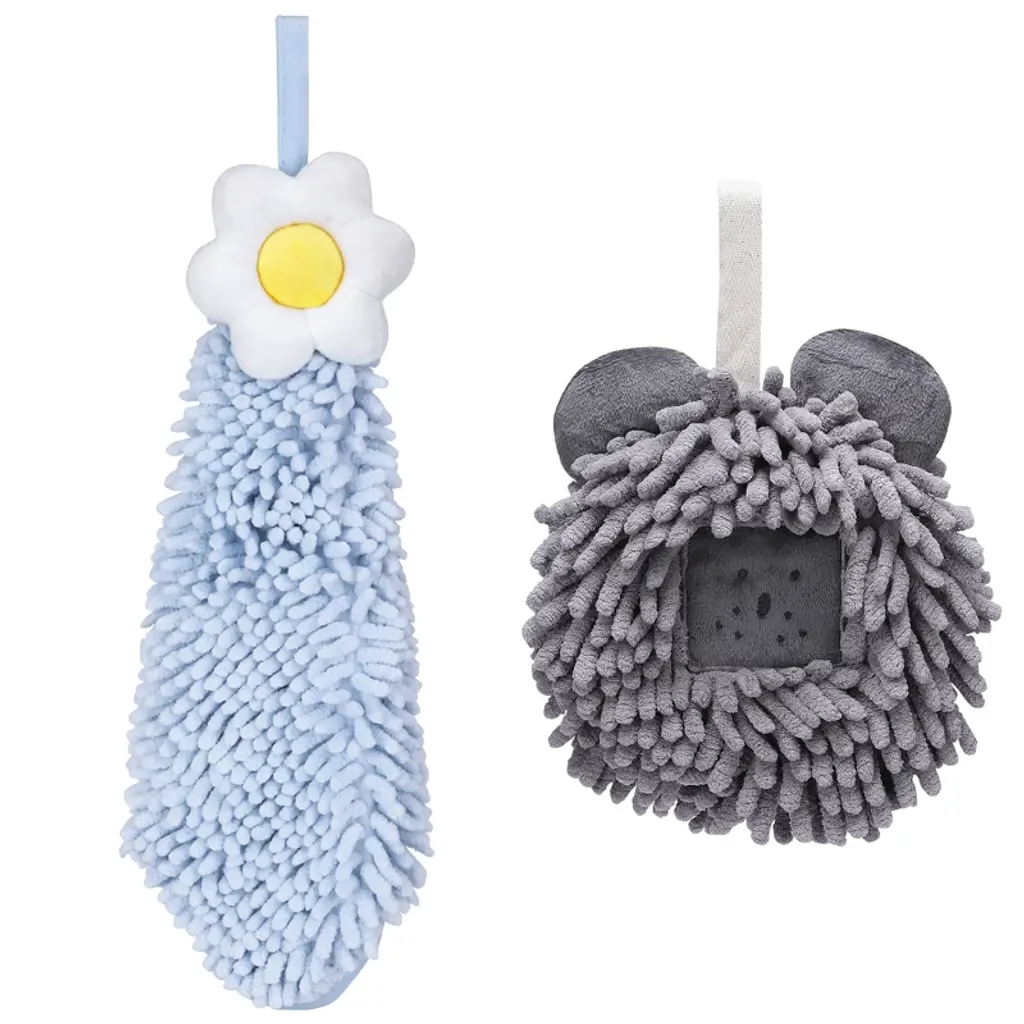 Regalwoven Chenille Soft Absorbent Flower Hanging Hand Towels For Bathroom 2 Pcs Blue-1/grey