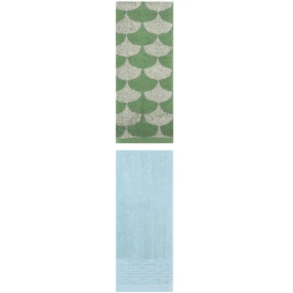 Regalwoven Cotton Hand Towels Absorbent Soft For Bathroom Hand Face Gym Spa 13" X 30"/13" X 29" 2 Pcs Beige/green