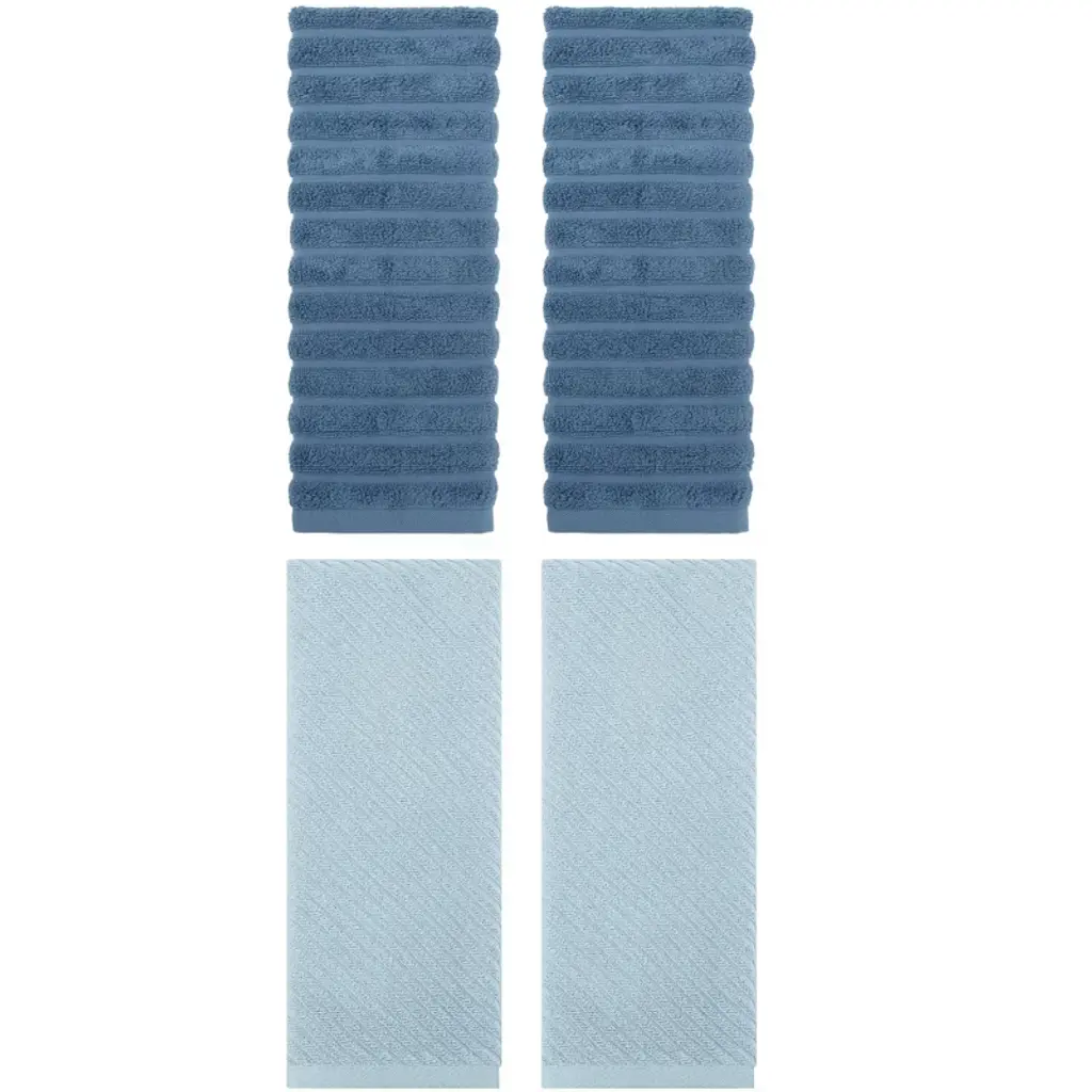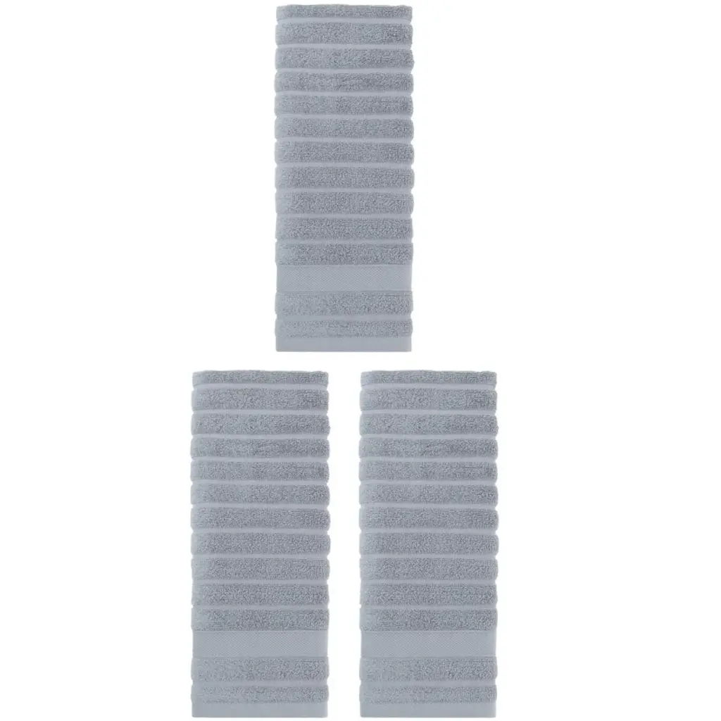 Regalwoven Cotton Quick Drying Soft Striped Hand Towel 14" X 30" White 2 Pcs Grey