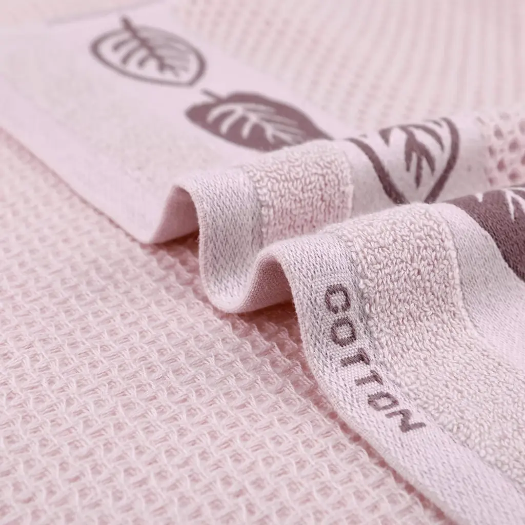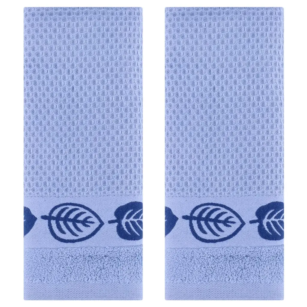 Regalwoven Cotton Soft Absorbent Waffle Design Leaves Pattern Decorative Hand Towel 13" X 29" 2 Pcs Brown
