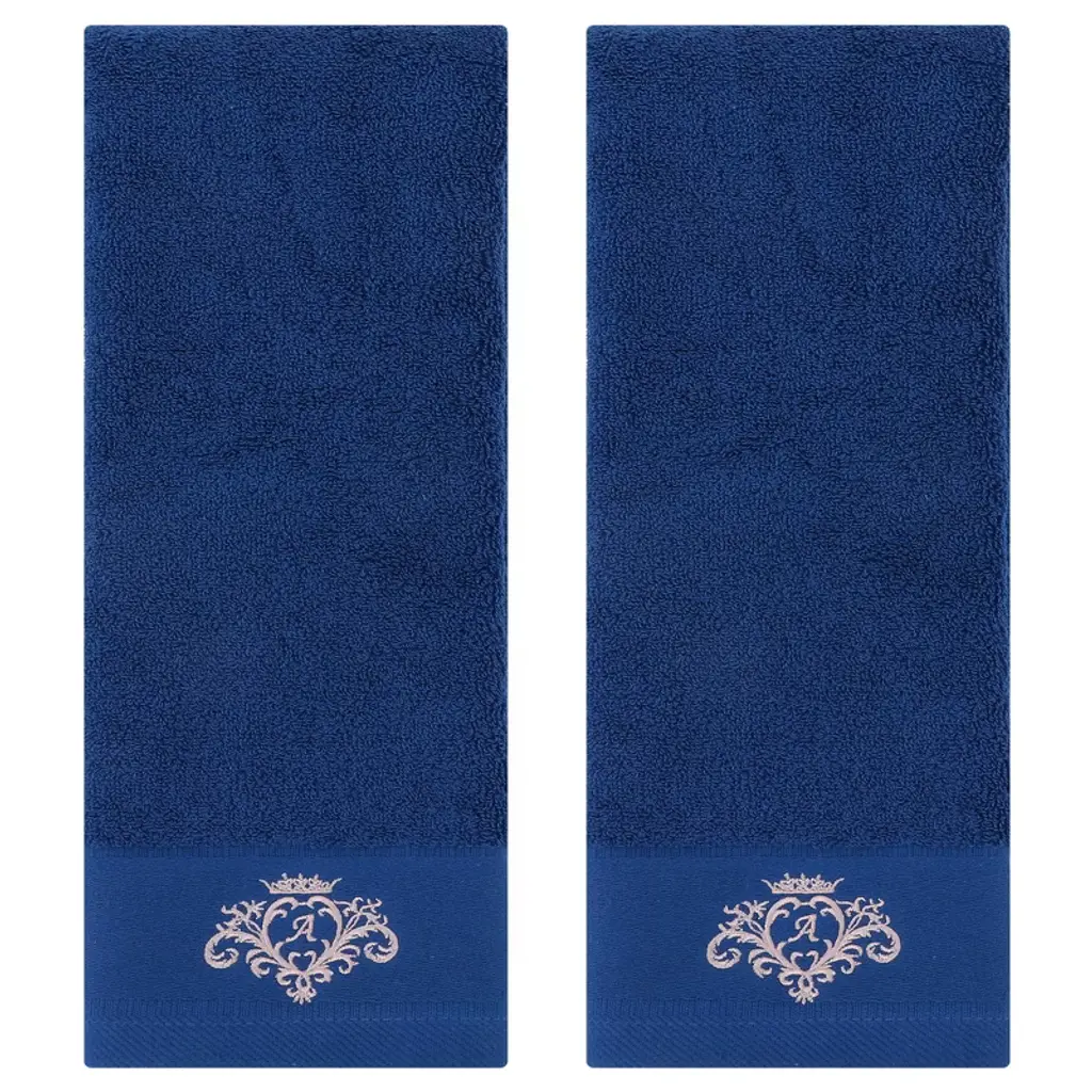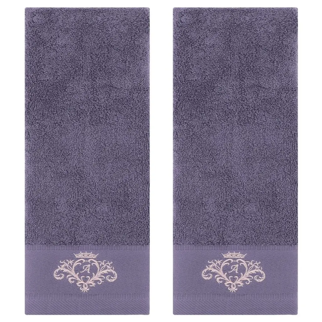 Regalwoven Crown Cartoon Pattern Cotton Soft Absorbent Decorative Hand Towel 13" X 30" 2 Pcs White