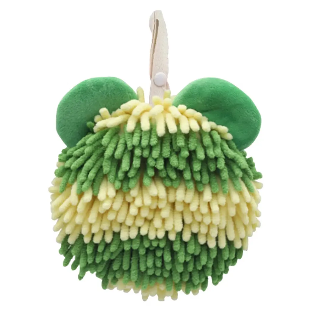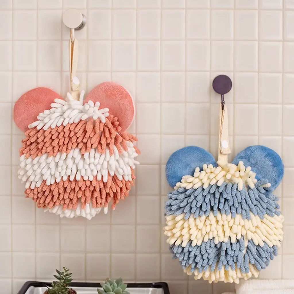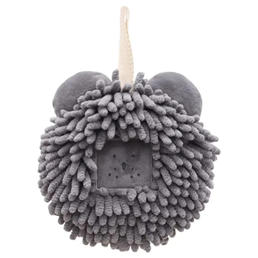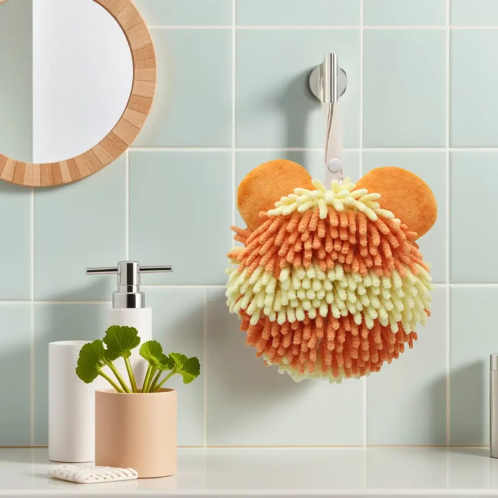 Regalwoven Cute Bear Shape Soft Absorbent Chenille Fuzzy Ball Hand Towel 7" X 7" 1 Pc Orange