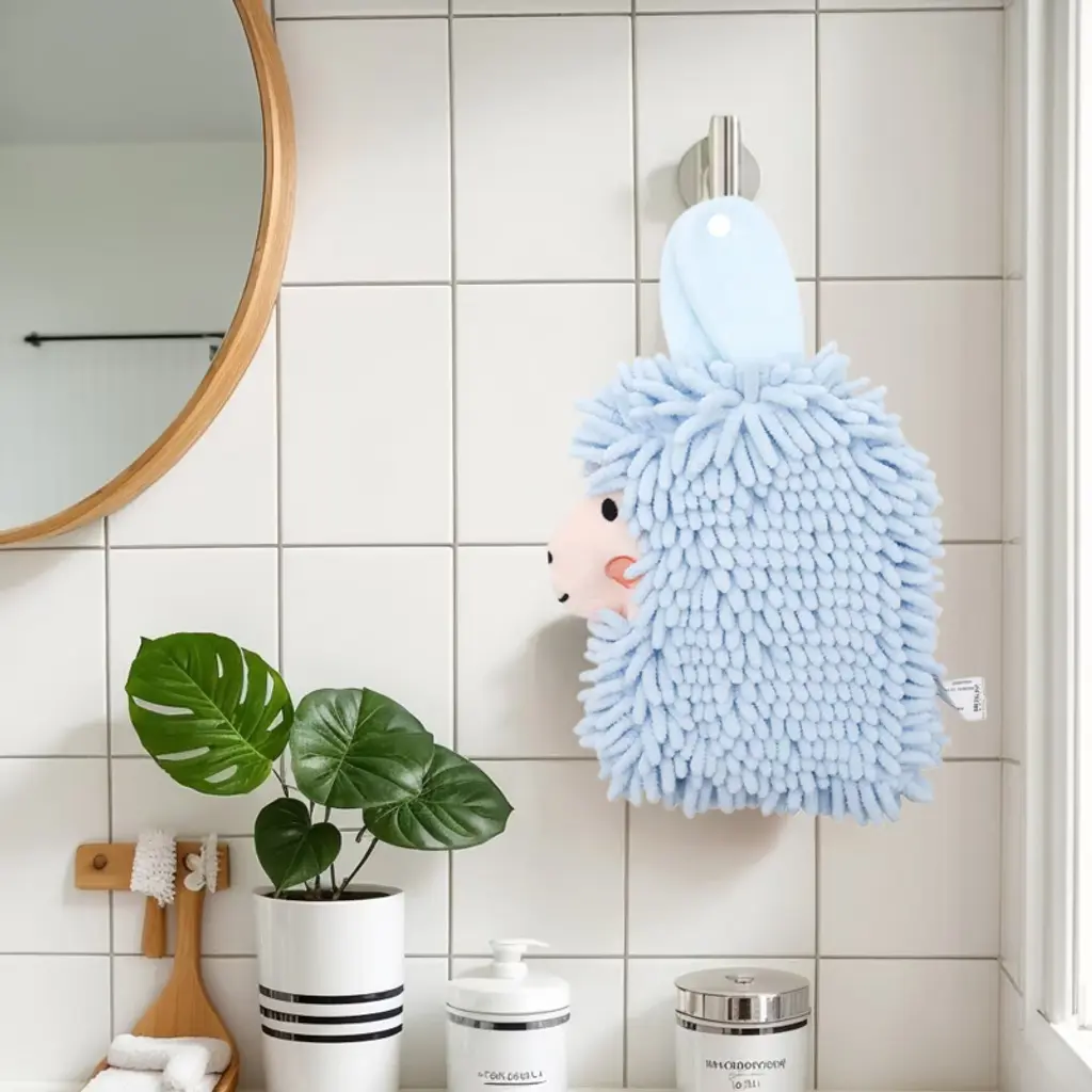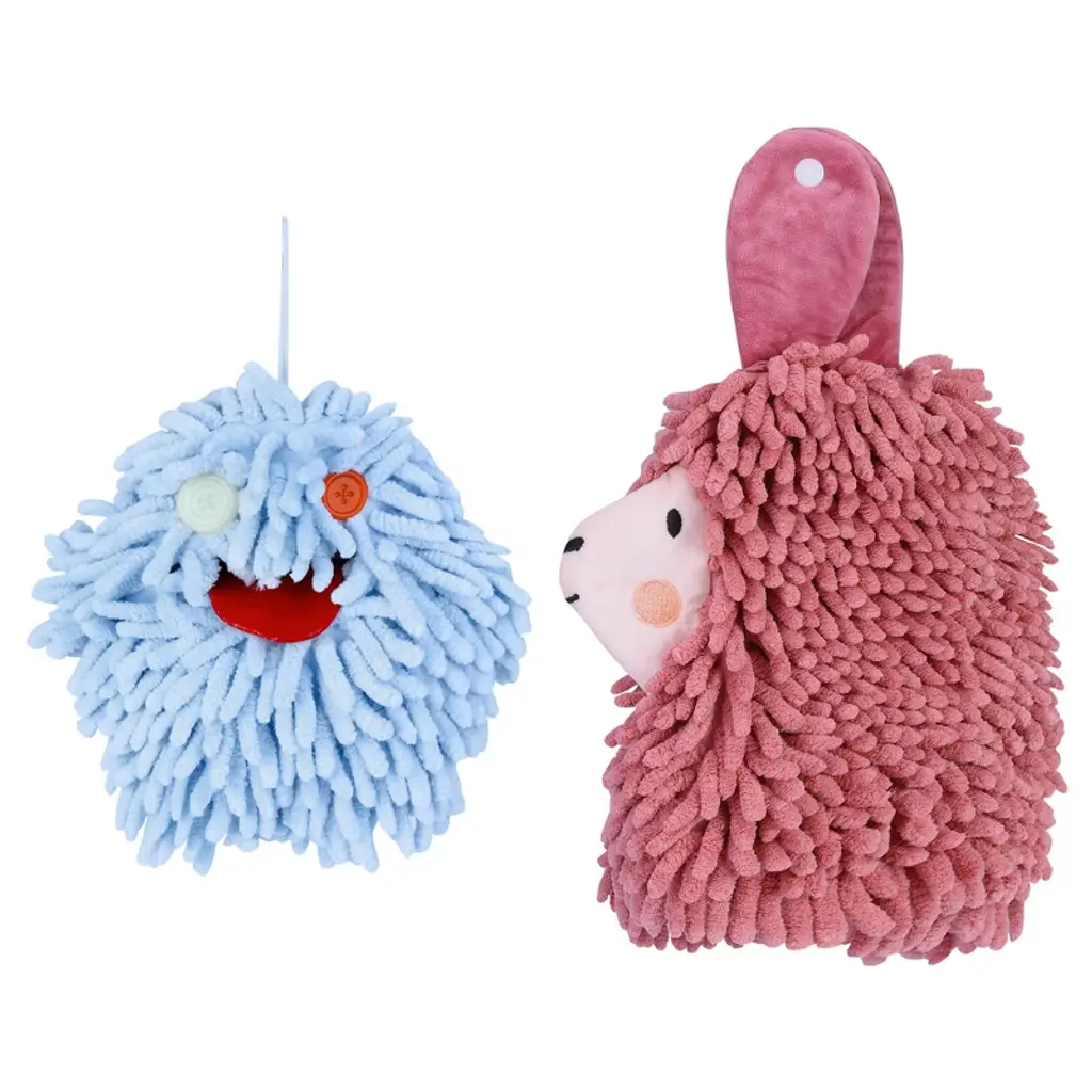Regalwoven Cute Cartoon Alpaca Soft Absorbent Chenille Decorative Hand Towels 2 Pcs Blue/indian Red