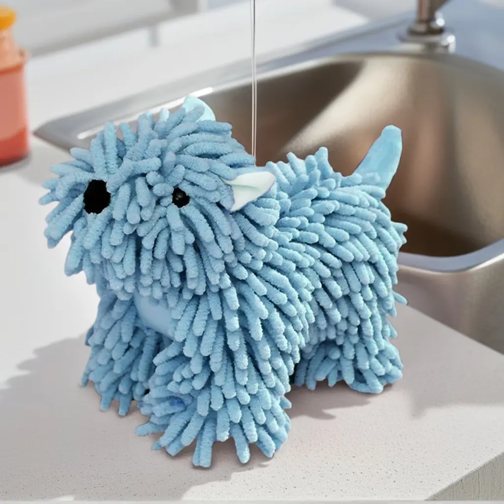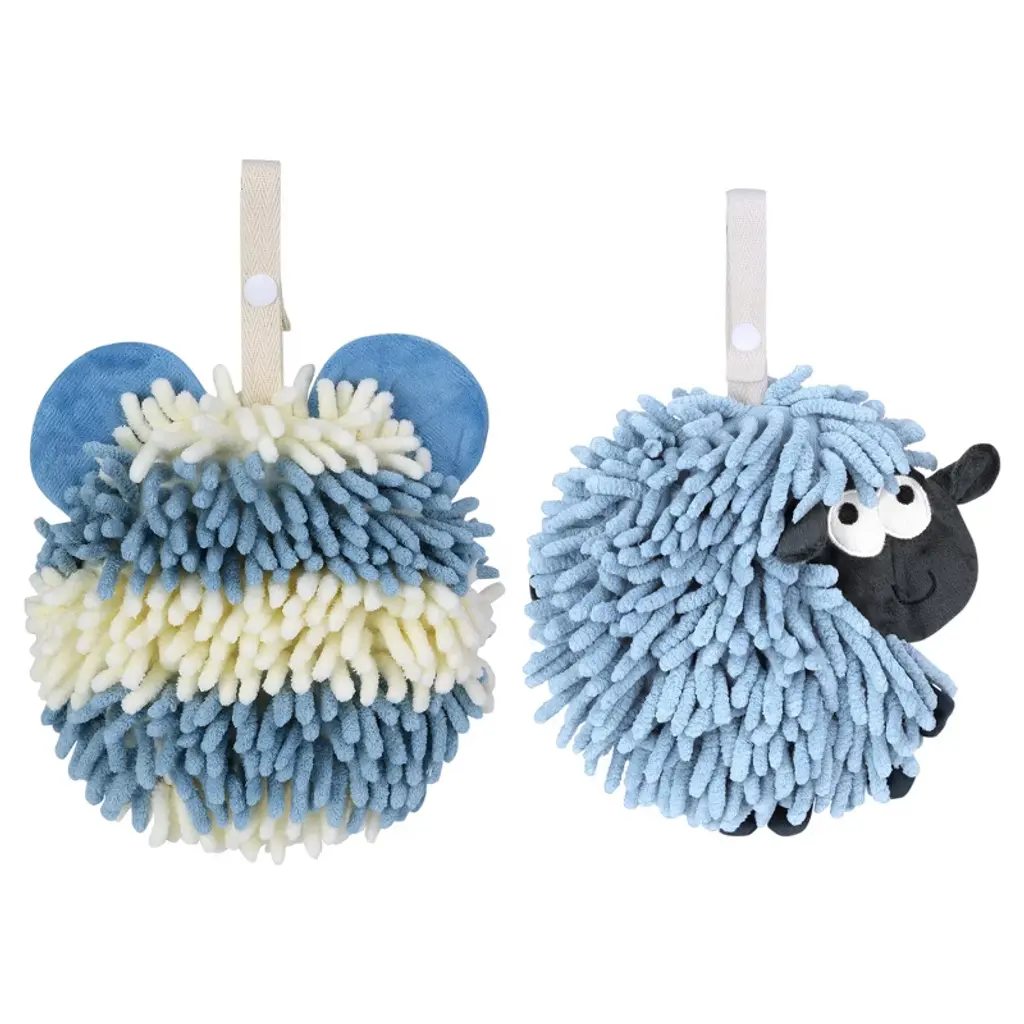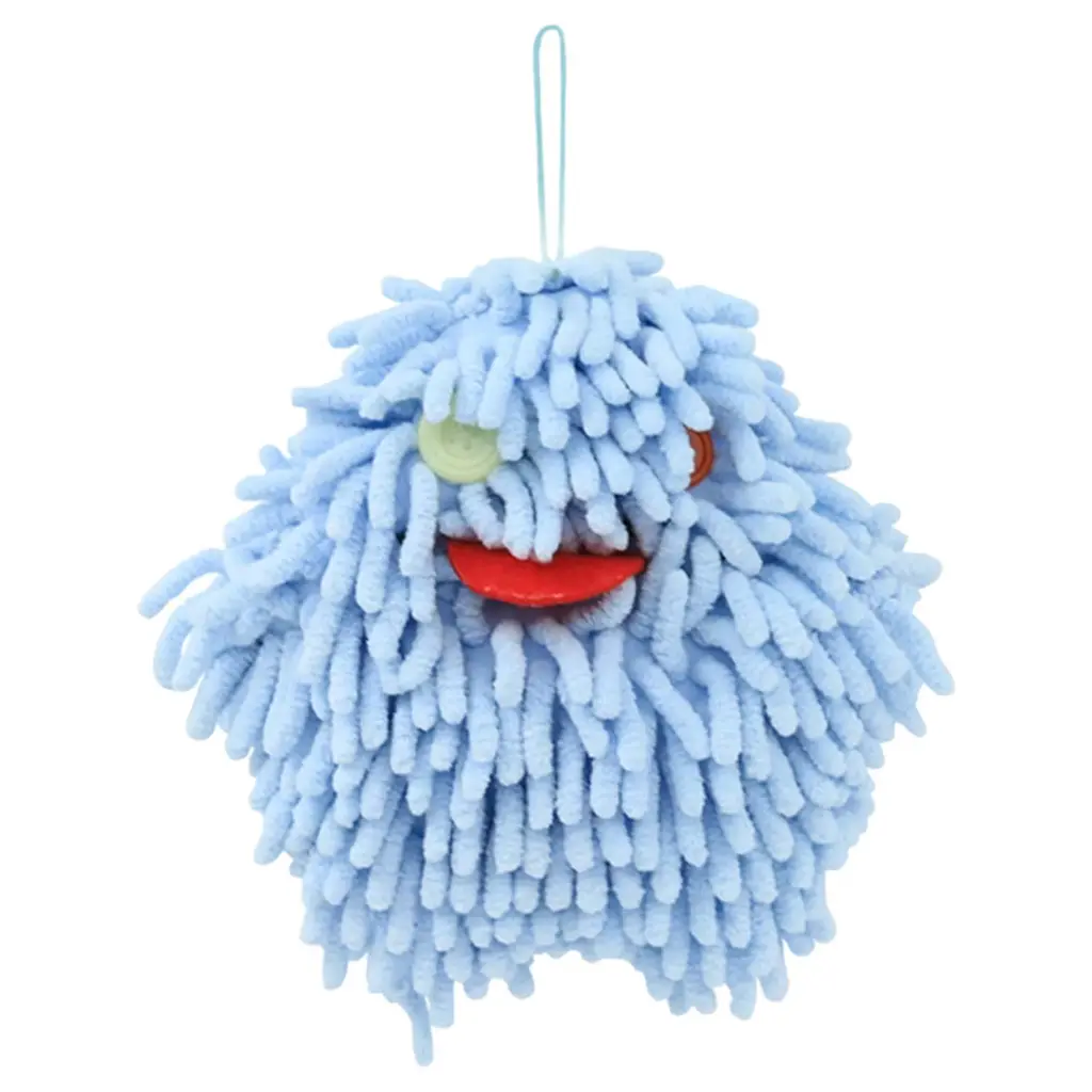 Regalwoven Cute Cartoon Dog Shape Soft Absorbent Chenille Hand Towel With Hanging Loop 8" X 10" 1 Pc Blue