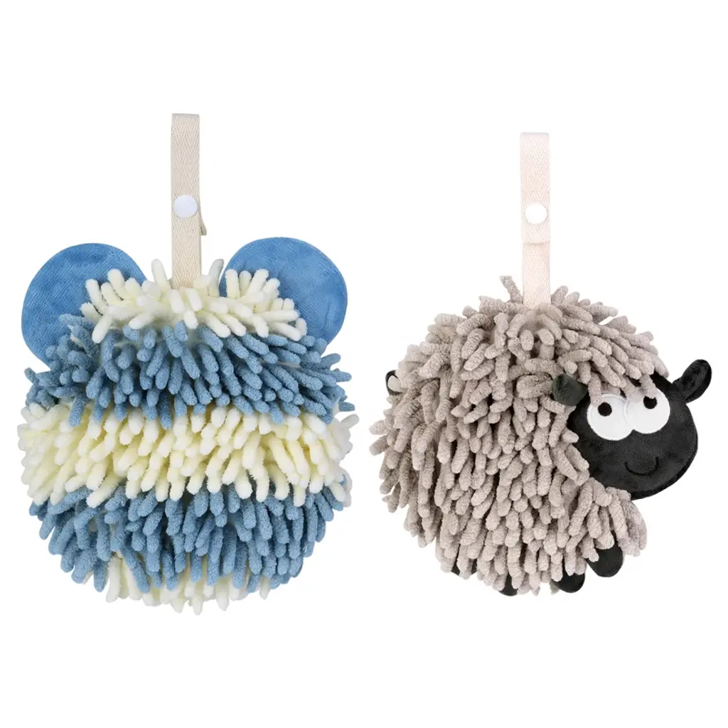 Regalwoven Cute Cartoon Dog Shape Soft Absorbent Chenille Hand Towel With Hanging Loop 8" X 10" 1 Pc Green