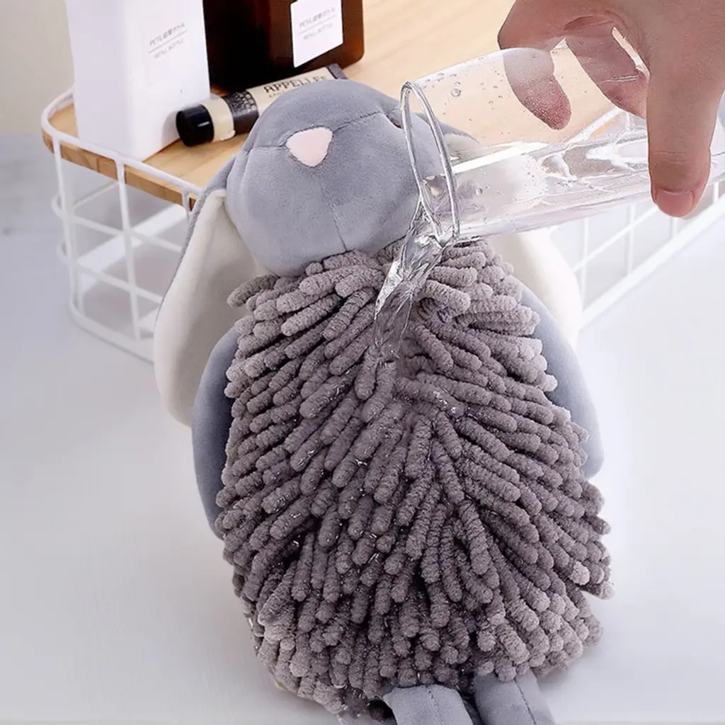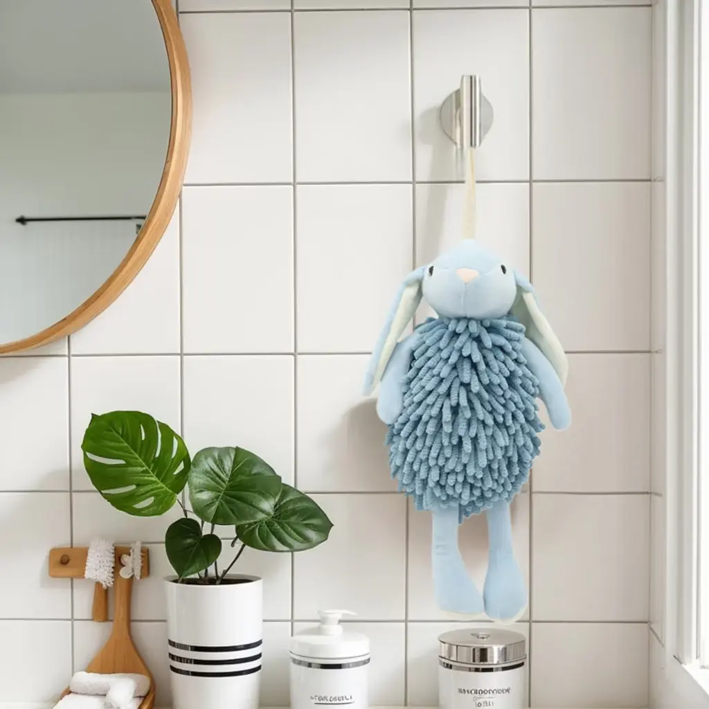 Regalwoven Cute Cartoon Rabbit Shape Fuzzy Ball Soft Absorbent Chenille Hand Towel 2 Packs 6" X 14" Blue