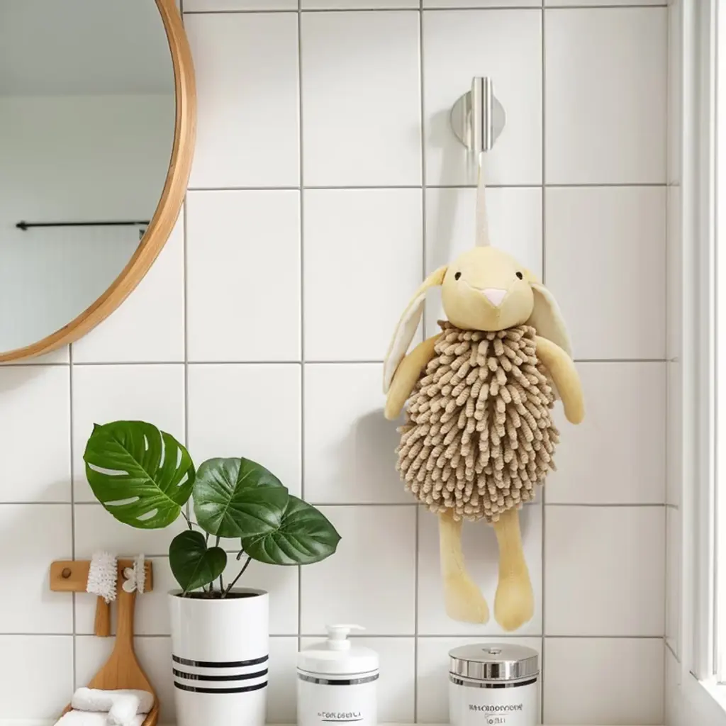 Regalwoven Cute Cartoon Rabbit Shape Fuzzy Ball Soft Absorbent Chenille Hand Towel 2 Packs 6" X 14" Brown/grey