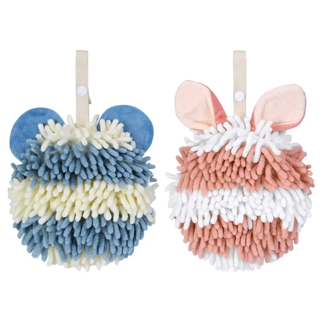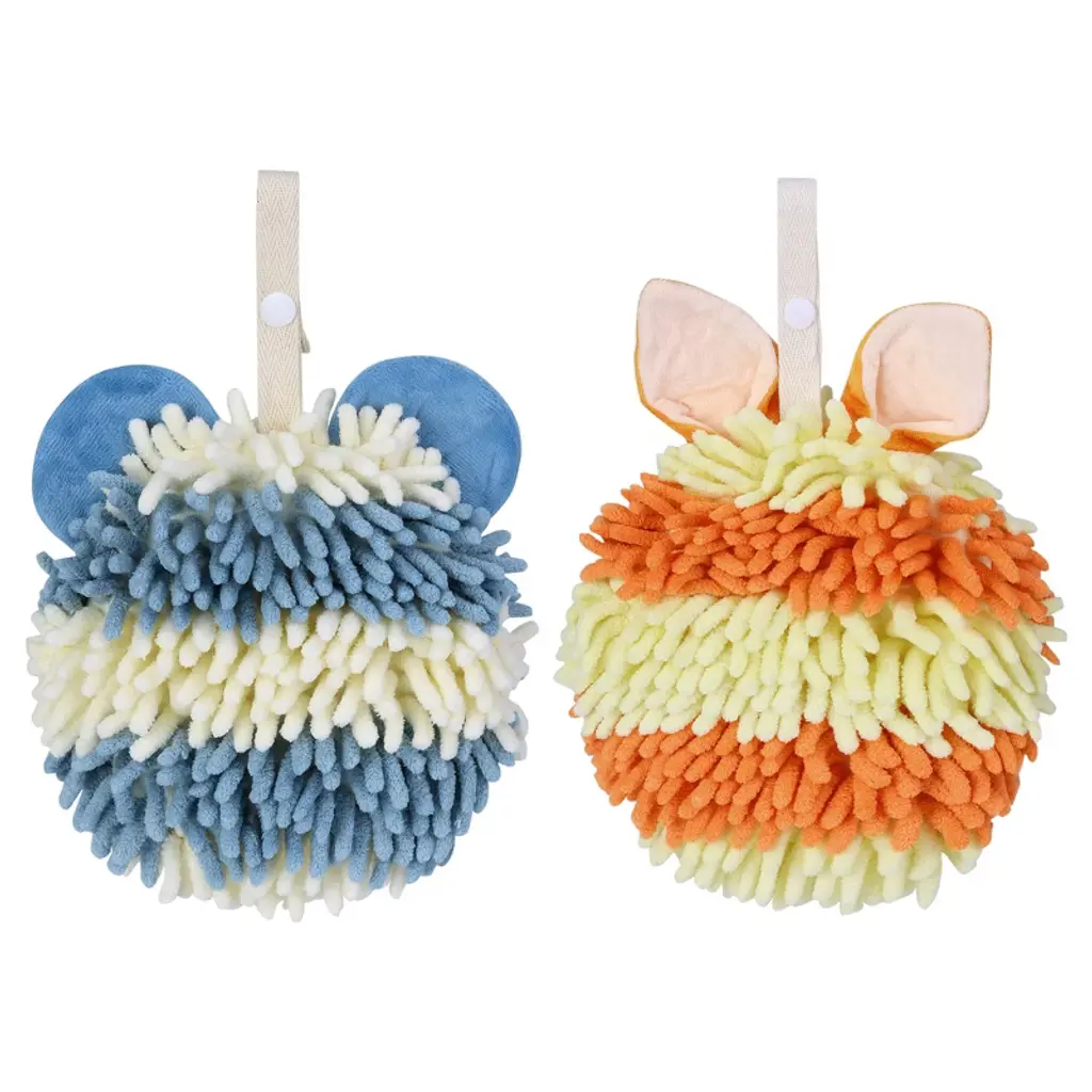 Regalwoven Cute Cartoon Soft Absorbent Fluffy Chenille Ball Hand Towels 2 Pcs Blue