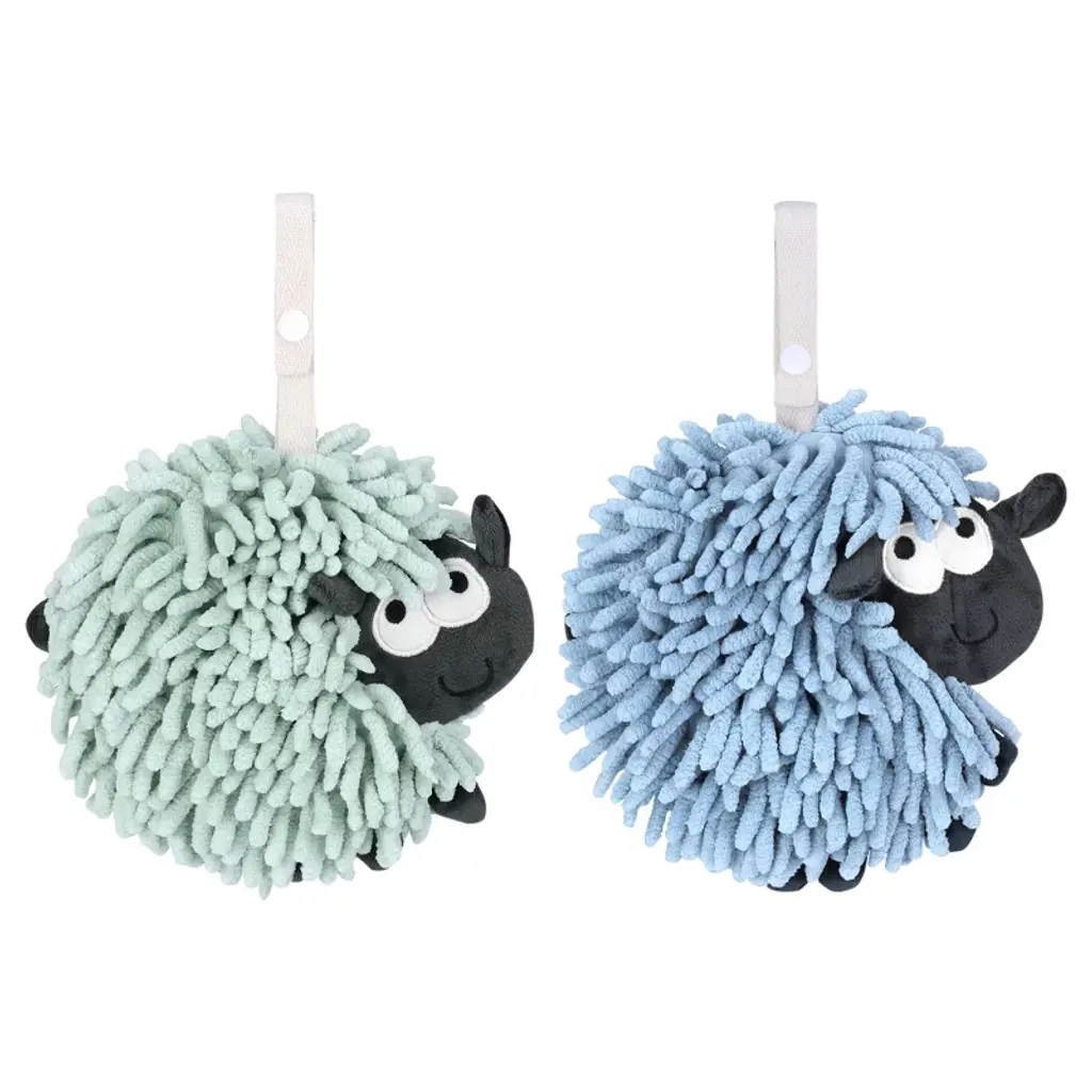 Regalwoven Cute Sheep Chenille Soft Absorbent Quick Drying Fuzzy Ball Hand Towel 9" X 13" 1 Pc Green