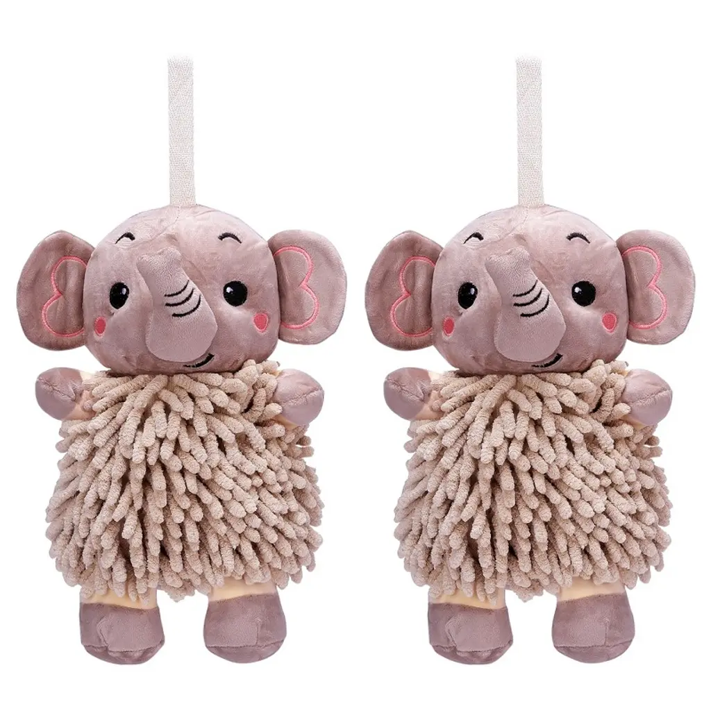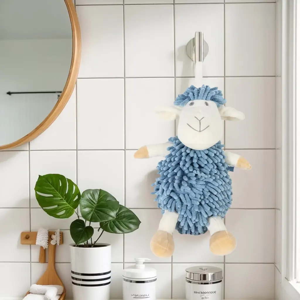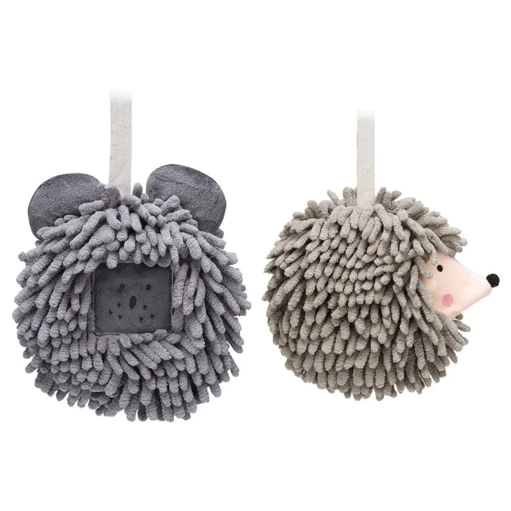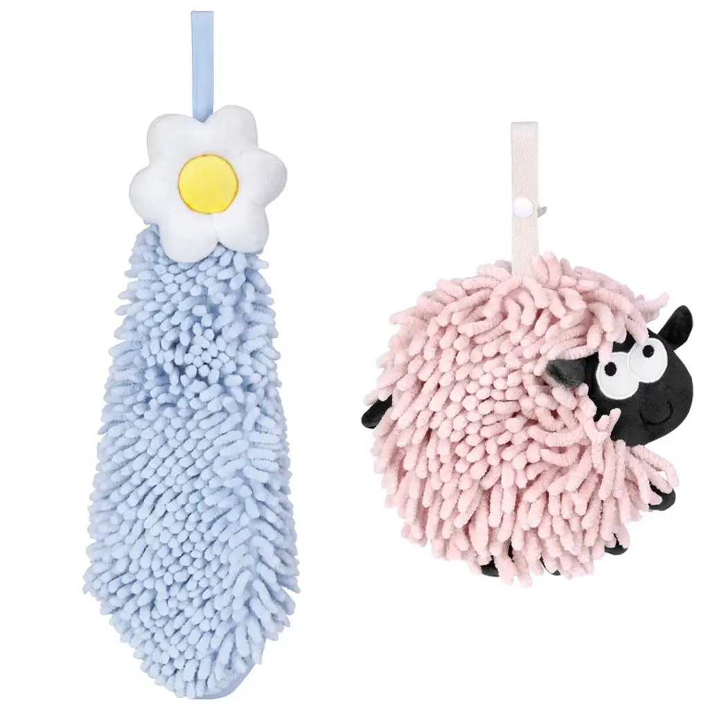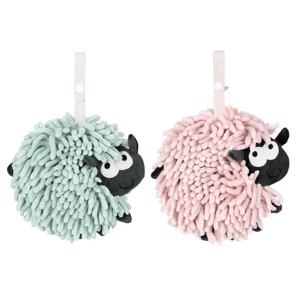 Regalwoven Cute Sheep Chenille Soft Absorbent Quick Drying Fuzzy Ball Hand Towel 9" X 13" 2 Pcs Blue/grey