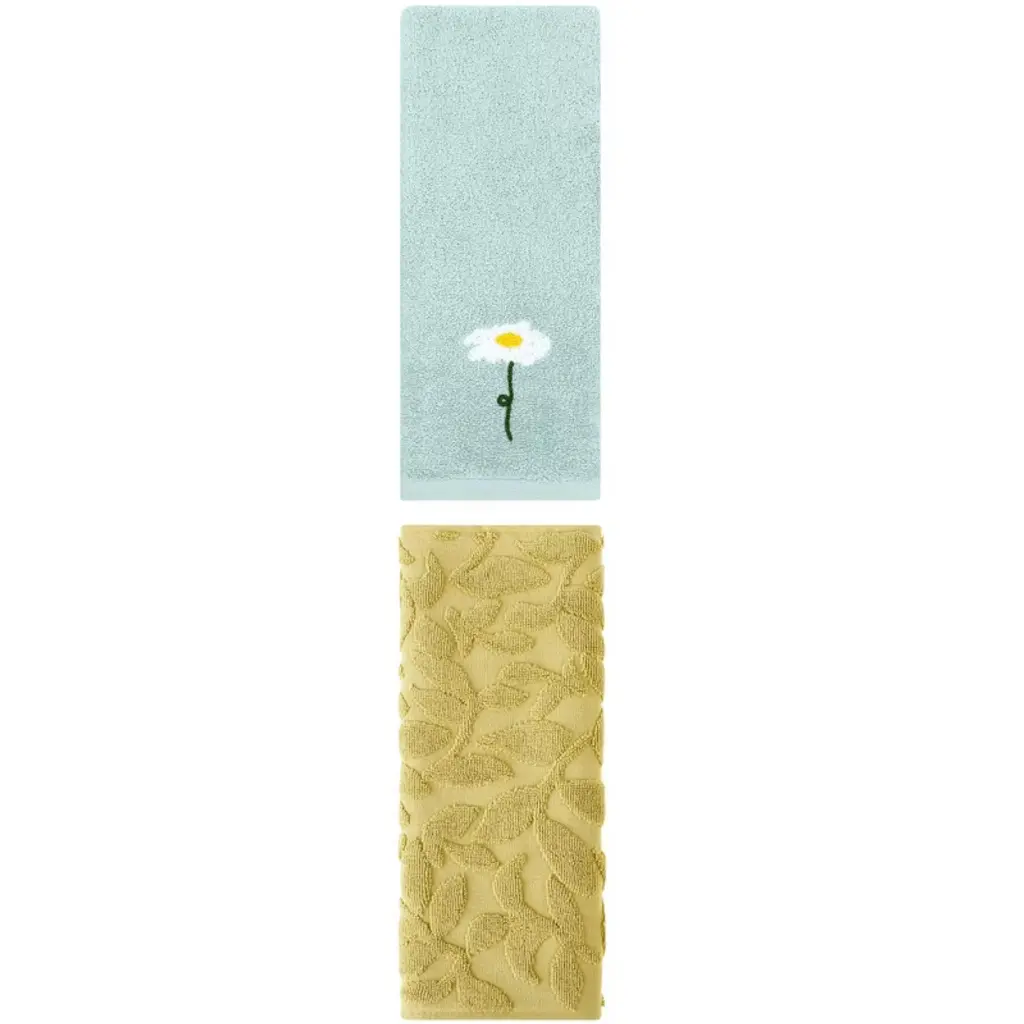 Regalwoven Floral Pattern Cotton Soft Absorbent Hand Towels 13" X 30"/14" X 30" 2 Pcs Light Brown/green