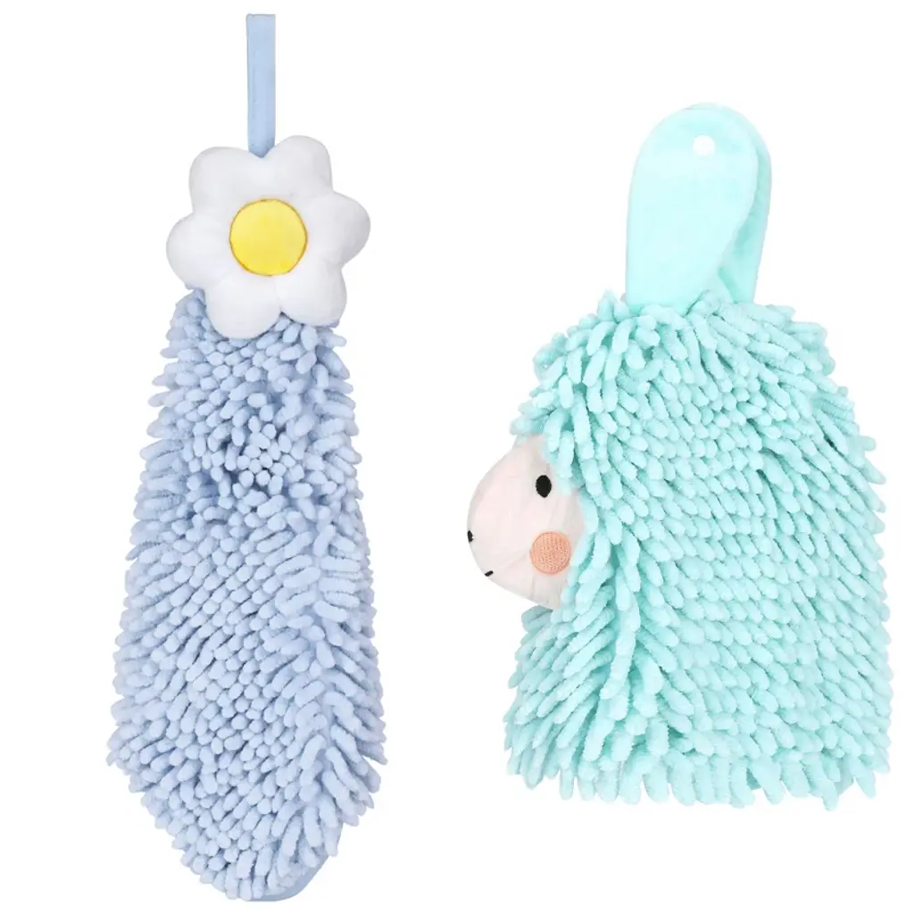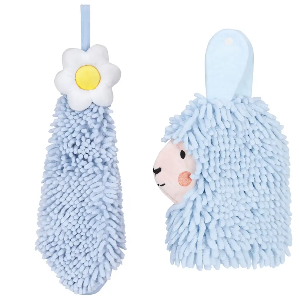 Regalwoven Flower And Sheep Shape Absorbent Fast Drying Chenille Hand Towels With Hanging Loop 6" X 15"/7" X 7" 2 Packs Blue-1/pink