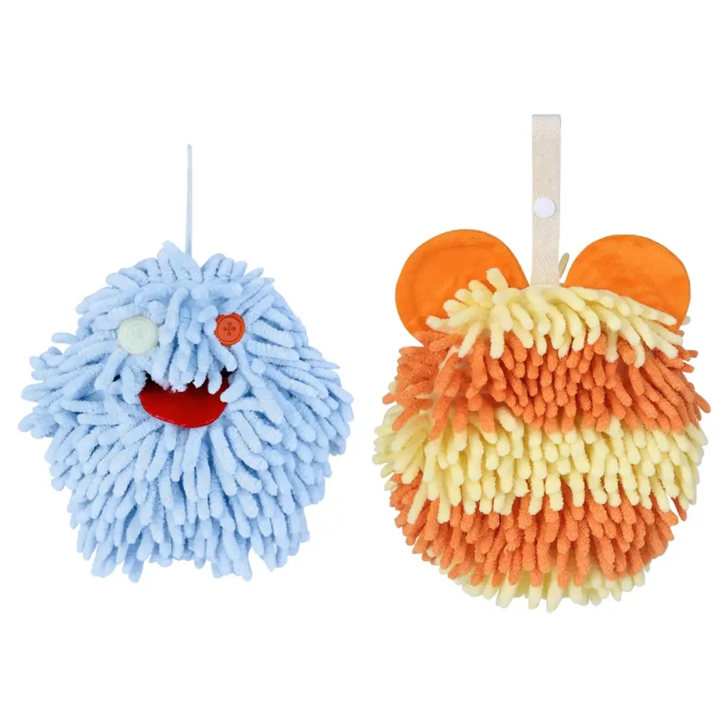 Regalwoven Rabbit Shape Quick Drying Soft Absorbent Decorative Chenille Fuzzy Ball Hand Towels With Hanging Loops 7" X 7" 2 Pcs Dark Grey/orange