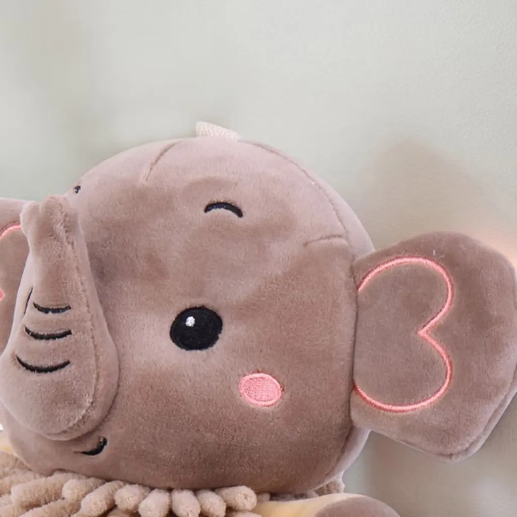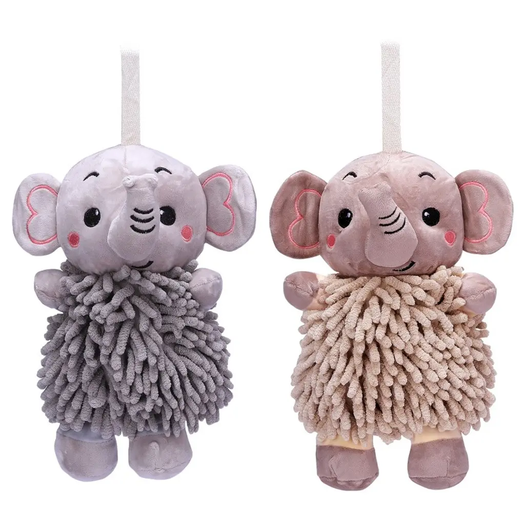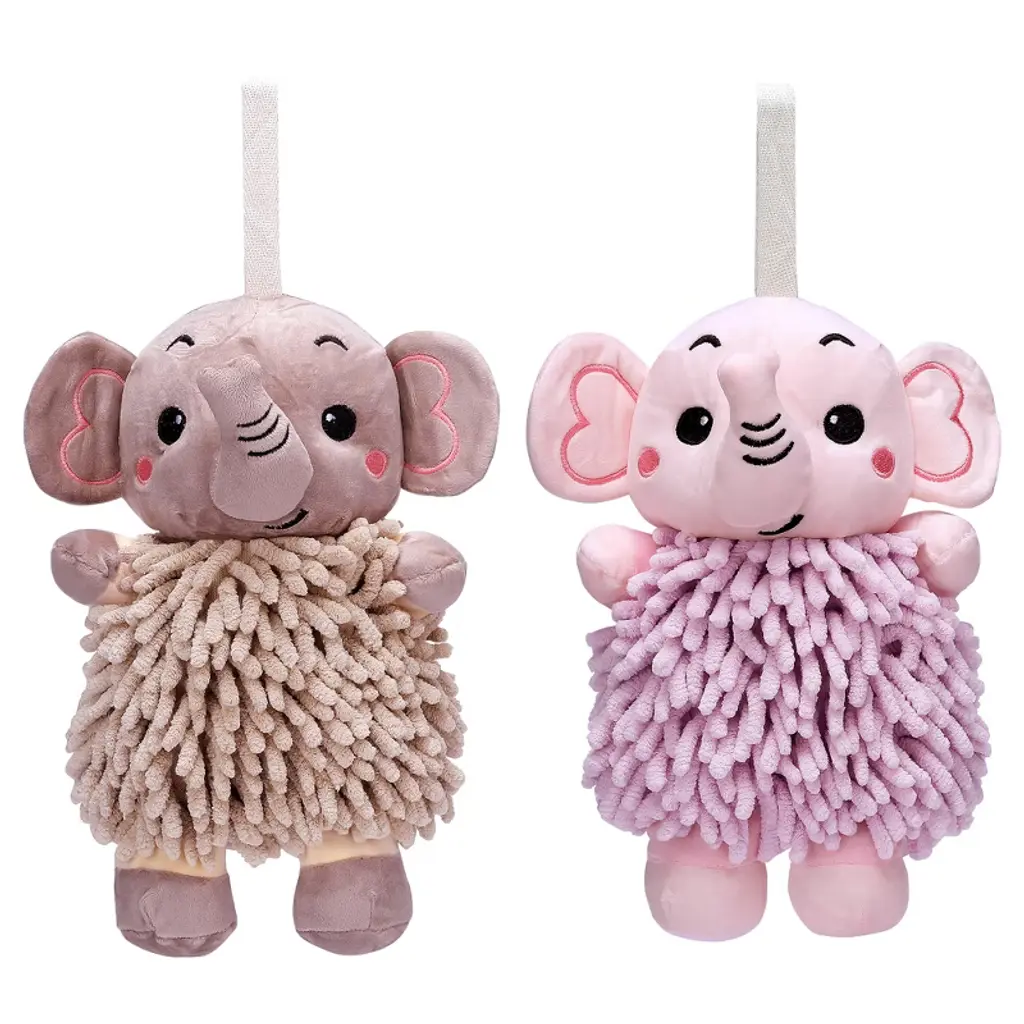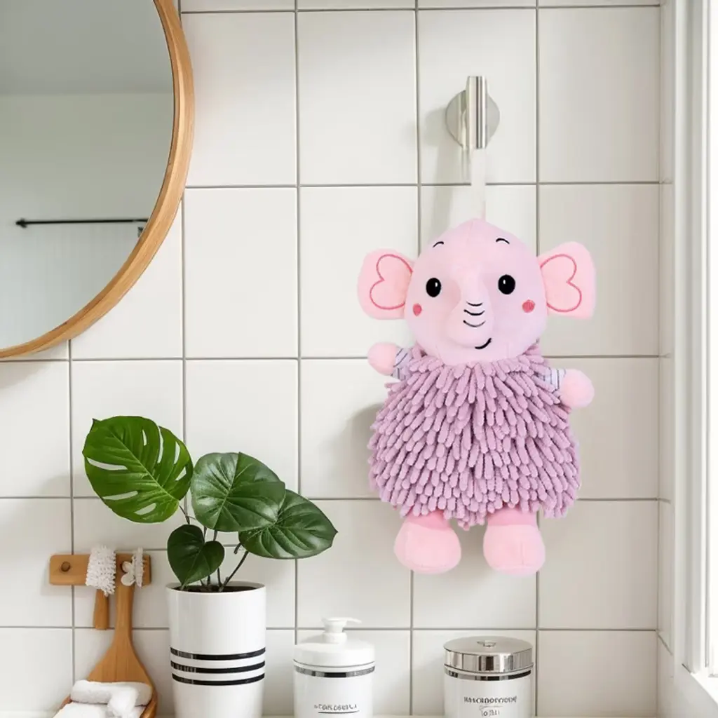 Regalwoven Soft Absorbent Chenille Cute Cartoon Elephant Hand Towel With Hanging Loop 7" X 11" 1 Pc Pink