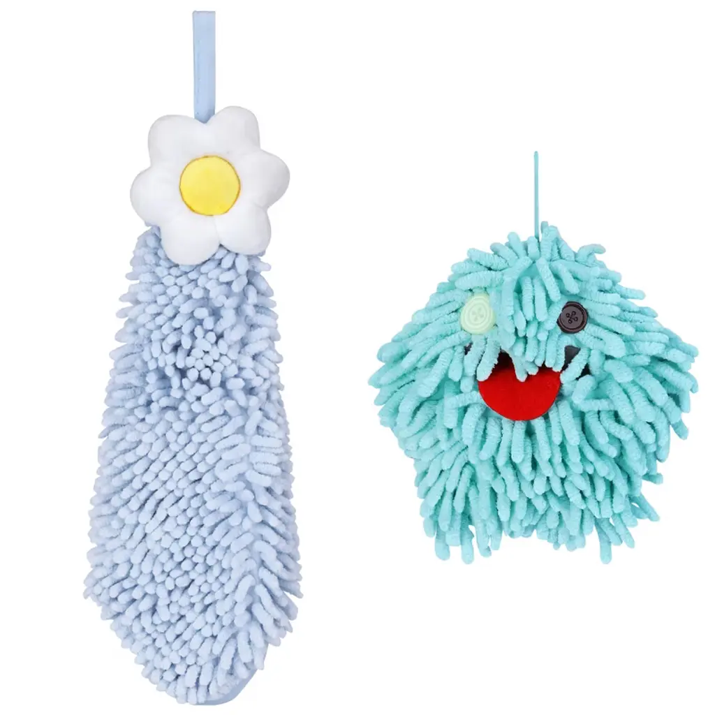 Regalwoven Soft Absorbent Chenille Decorative Hanging Ball Hand Towels 2 Pcs Green