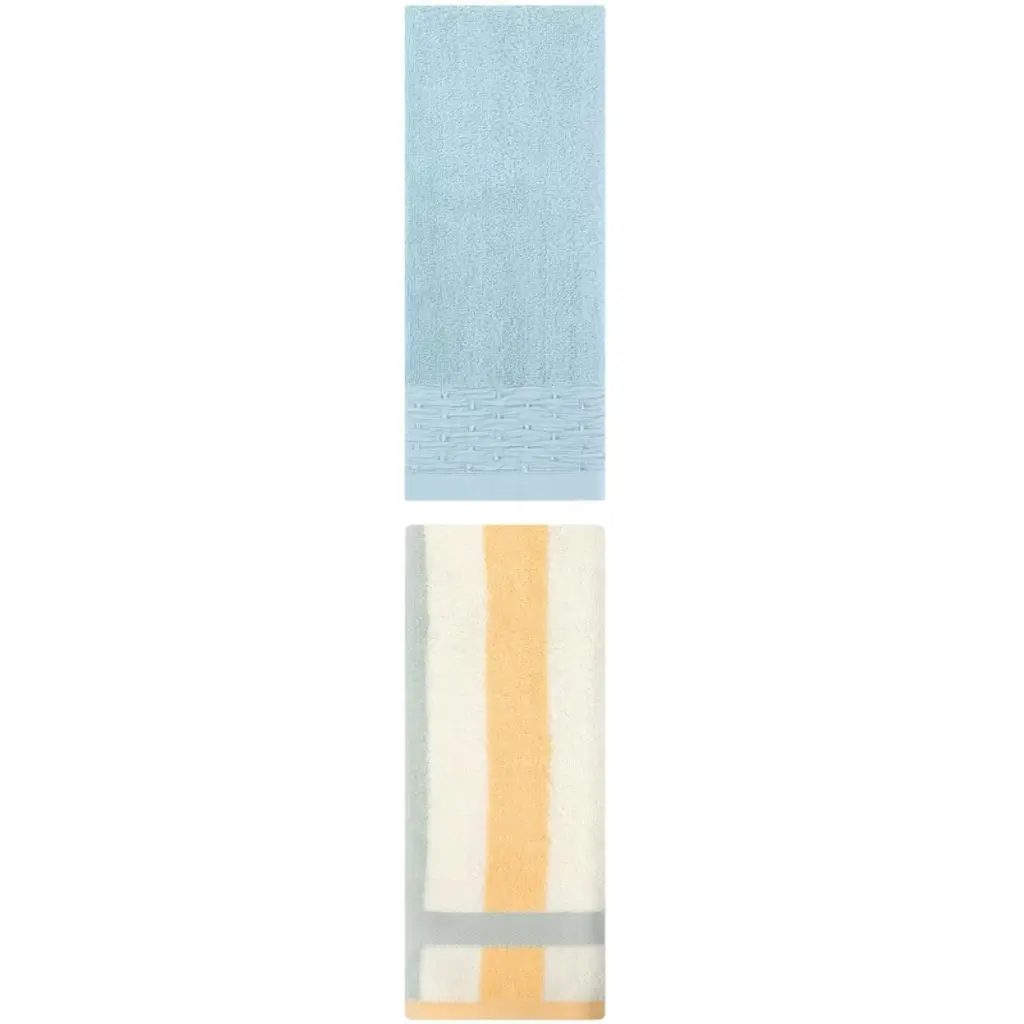Regalwoven Soft Absorbent Quick Drying Hand Towels 14" X 30" 2 Pcs Beige/blue