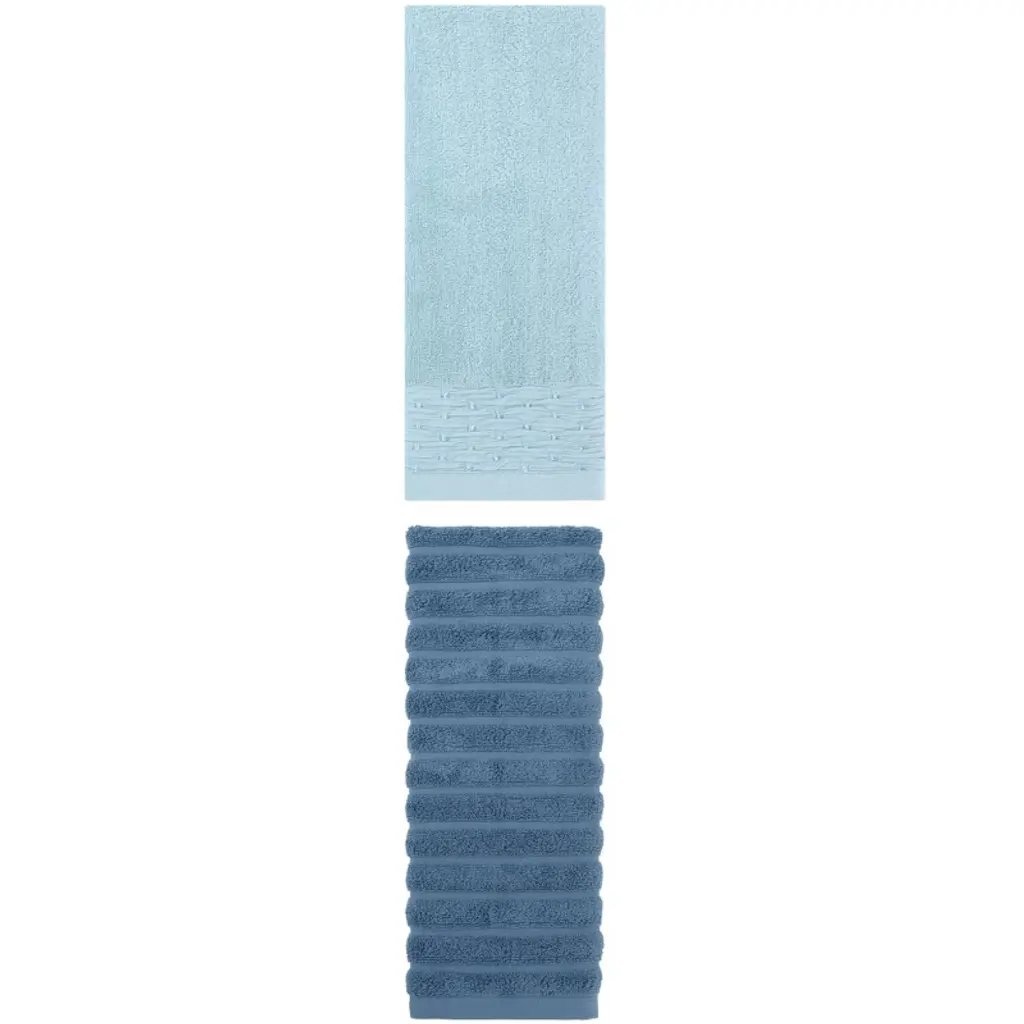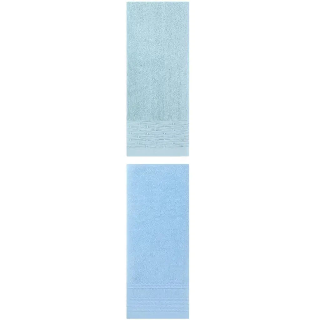 Regalwoven Solid Absorbent Soft Cotton Hand Towels For Bathroom Hotel And Spa 13" X 30" 2 Pcs Blue/light Cyan