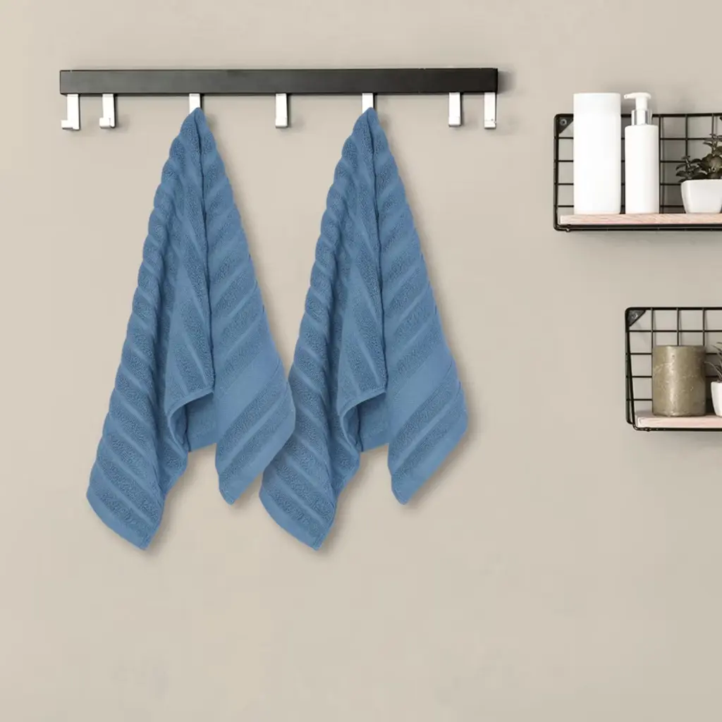 Regalwoven Solid Soft Absorbent Cotton Bathroom Hand Towels 14" X 30" 2 Pcs Blue