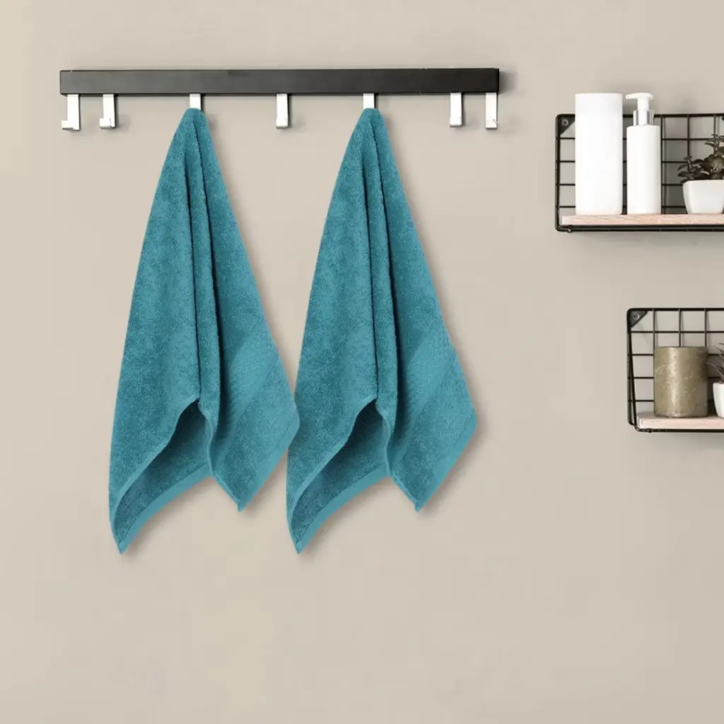 Regalwoven Solid Textured Cotton Absorbent Soft Bathroom Hand Towel 13" X 30"/14" X 30" 2 Packs Dark Green/blue