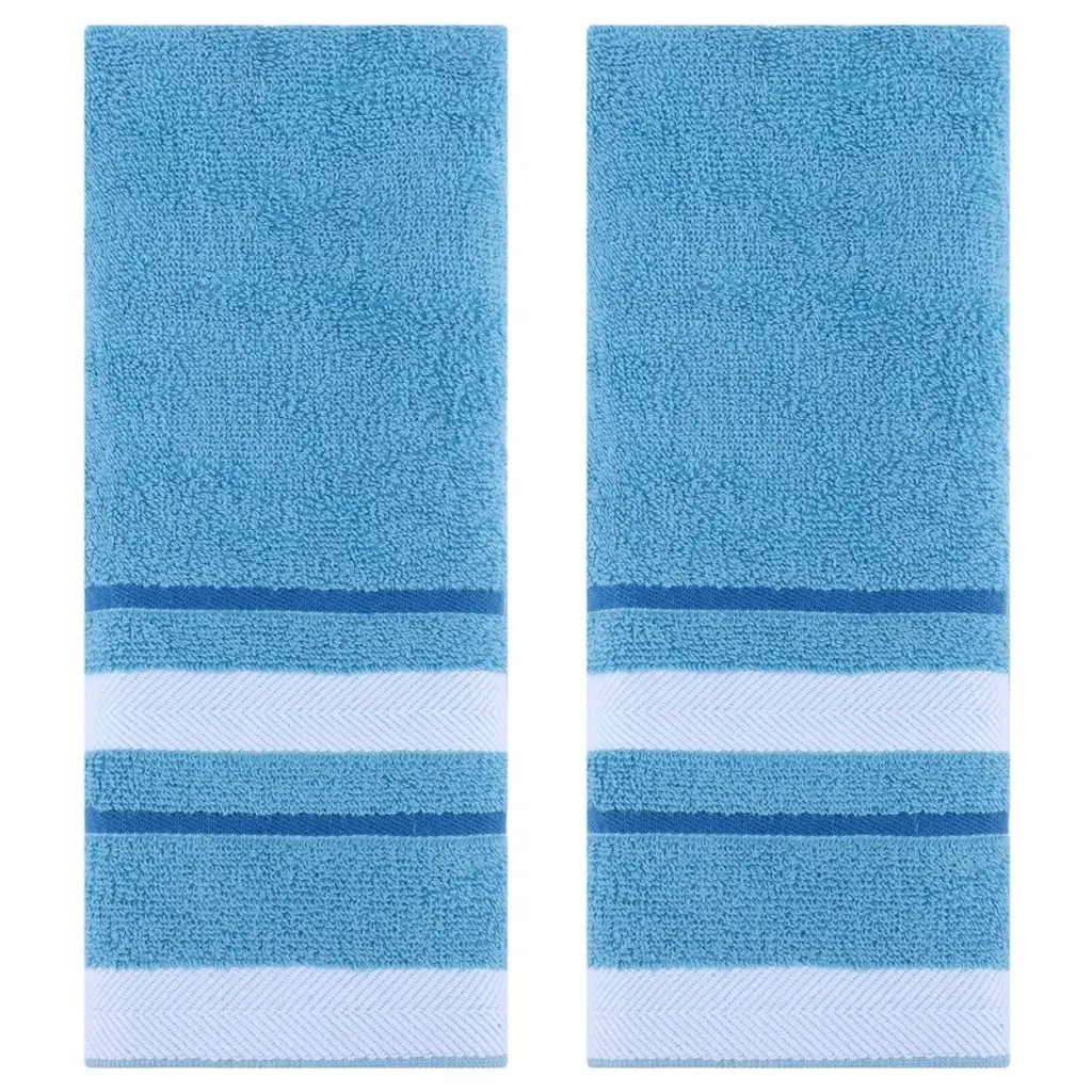 Regalwoven Striped Pattern Cotton Bathroom Hand Towels For Home Decor 13" X 29"/13" X 27" 2 Pcs Blue