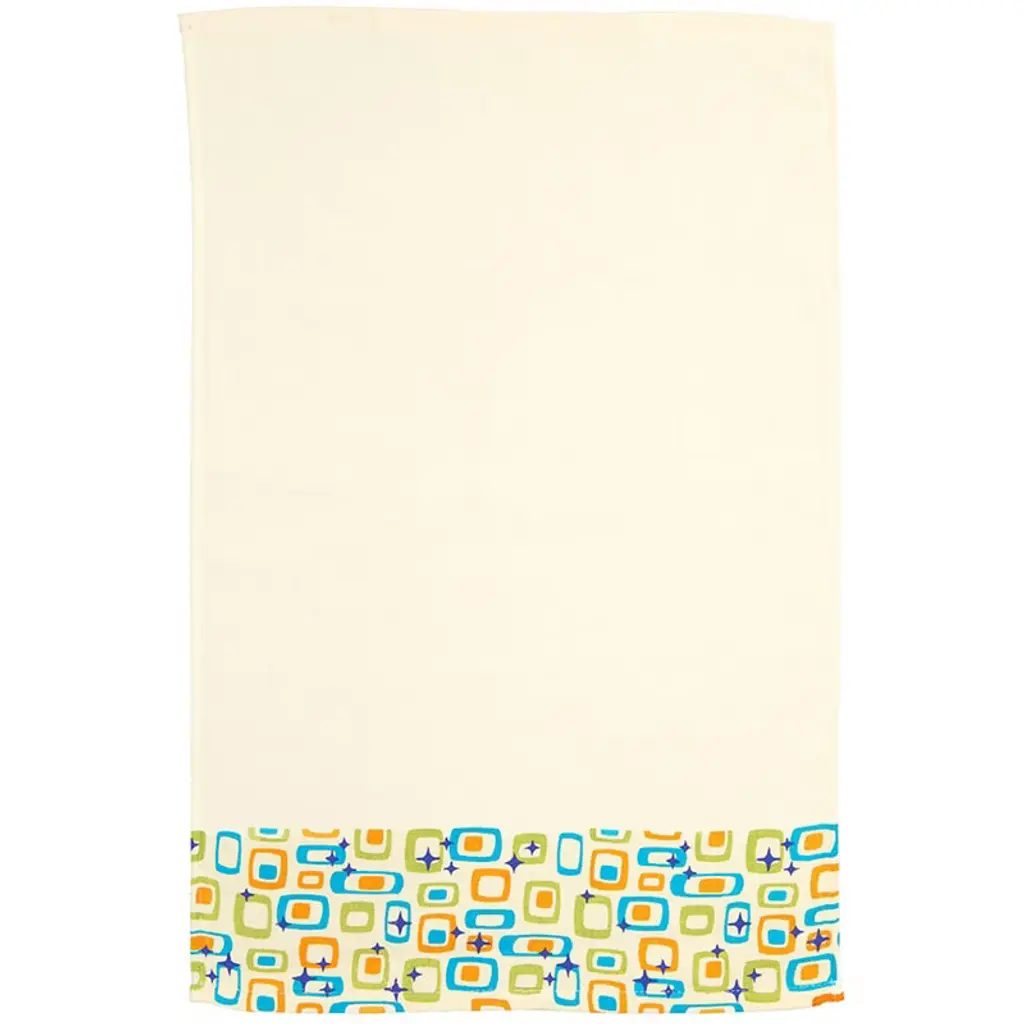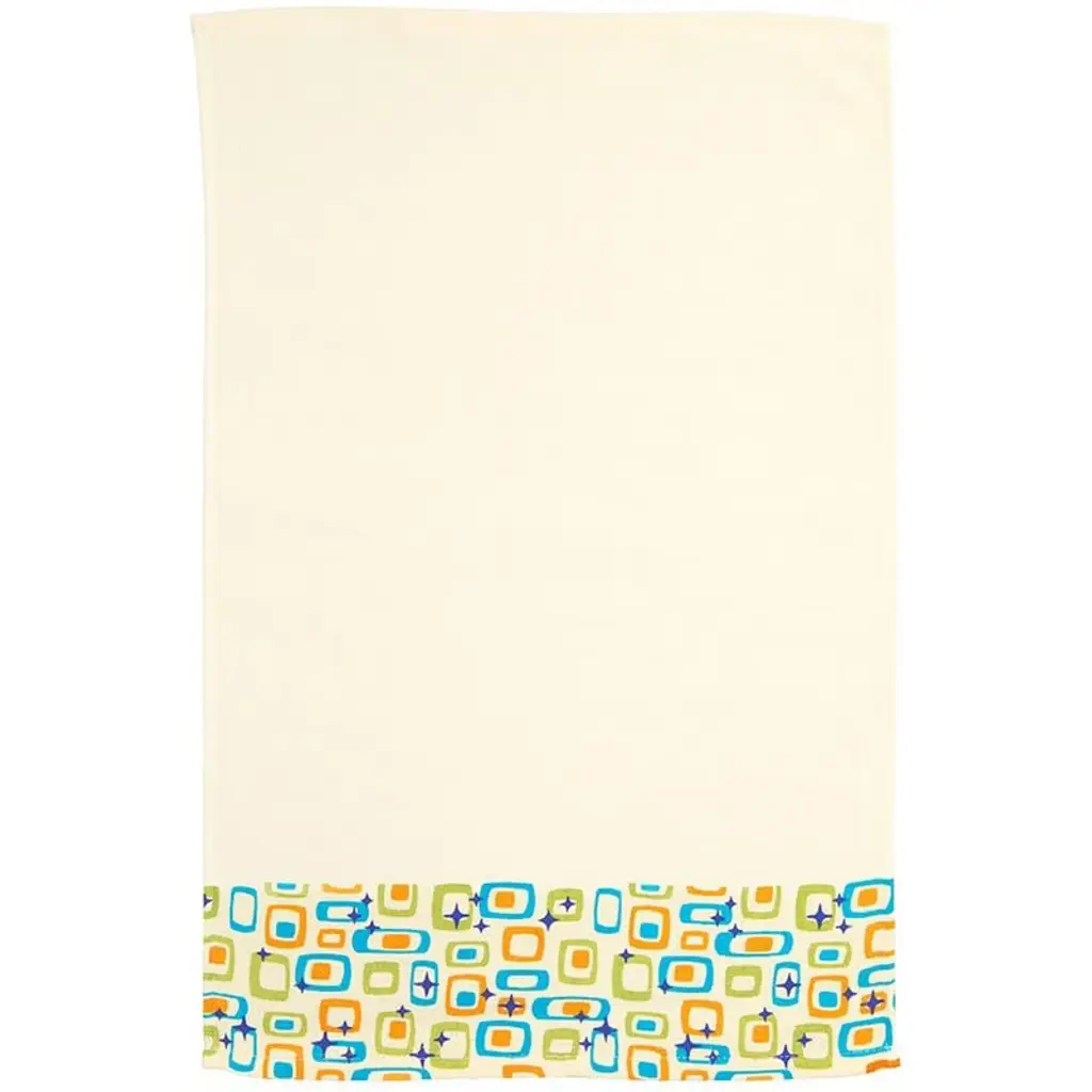 Add a splash of joy and nostalgia to your bathroom decor with this vibrant Retro Bath Collection. The set includes two hand towels, each measuring 16" W x 25" L, crafted from soft and absorbent cotton. These towels feature a delightful array of multicolored geometric shapes, including rectangles and squares with rounded corners, creating a playful and eye-catching design. Perfect for adding a touch of retro charm and a burst of happy colors to your daily routine. Designed for convenience, these towels are machine washable and can be tumble dried, making them easy to care for and maintain their vibrant look.