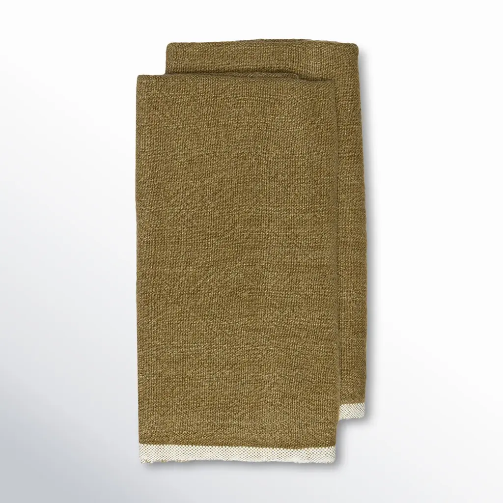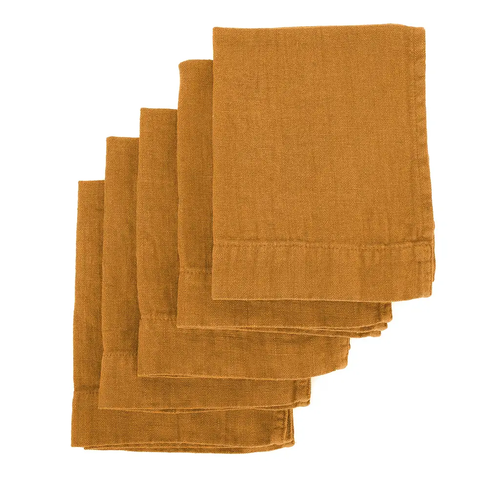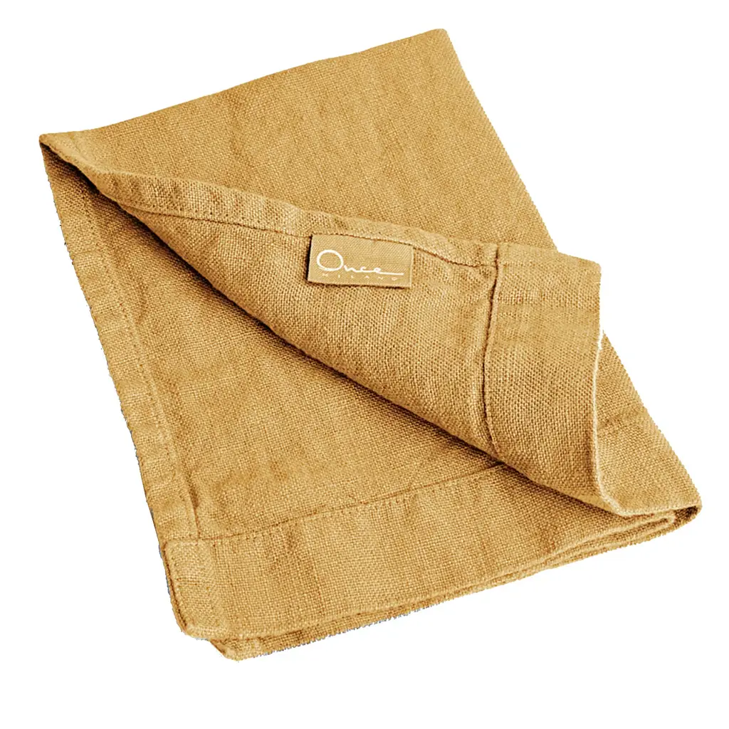 Handcrafted with traditional methods using linen of the best quality, this set of five hand towels in medium weight (280 gr/sq m) will be an elegant addition to any bathroom or powder room. Their joyful mustard hue is a pop of color that will enliven a black and white or monochromatic interior. A perfect complement to any home or a refined gift, this set celebrates everyday with understated sophistication.