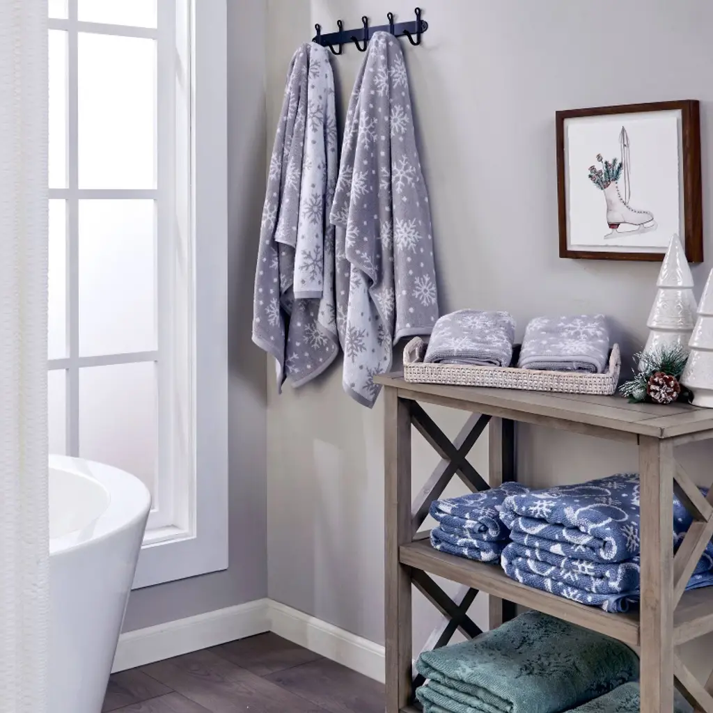 Warm up the winter season with this plush, 2-piece hand towel set. Made of soft terry jacquard, they feature a 2-tone scattered snowflake pattern with banded hem. The colors are opposite in pattern on the reverse side. They can be used all winter long in the bathroom or kitchen, and make a fun holiday or host/hostess gift. Coordinating Bath Towel sold separately. At SKL Home we bring personality, fun, and flair to your space with the best in home décor. We're a close-knit, small company full of big ideas in a wide variety of styles. From upbeat and modern, to classic and cozy, SKL Home has a look to complement any space. Combining 40+ years’ experience, global design inspiration, and the best fabrications, our employee-owned company continues to lead the way in home accessories.