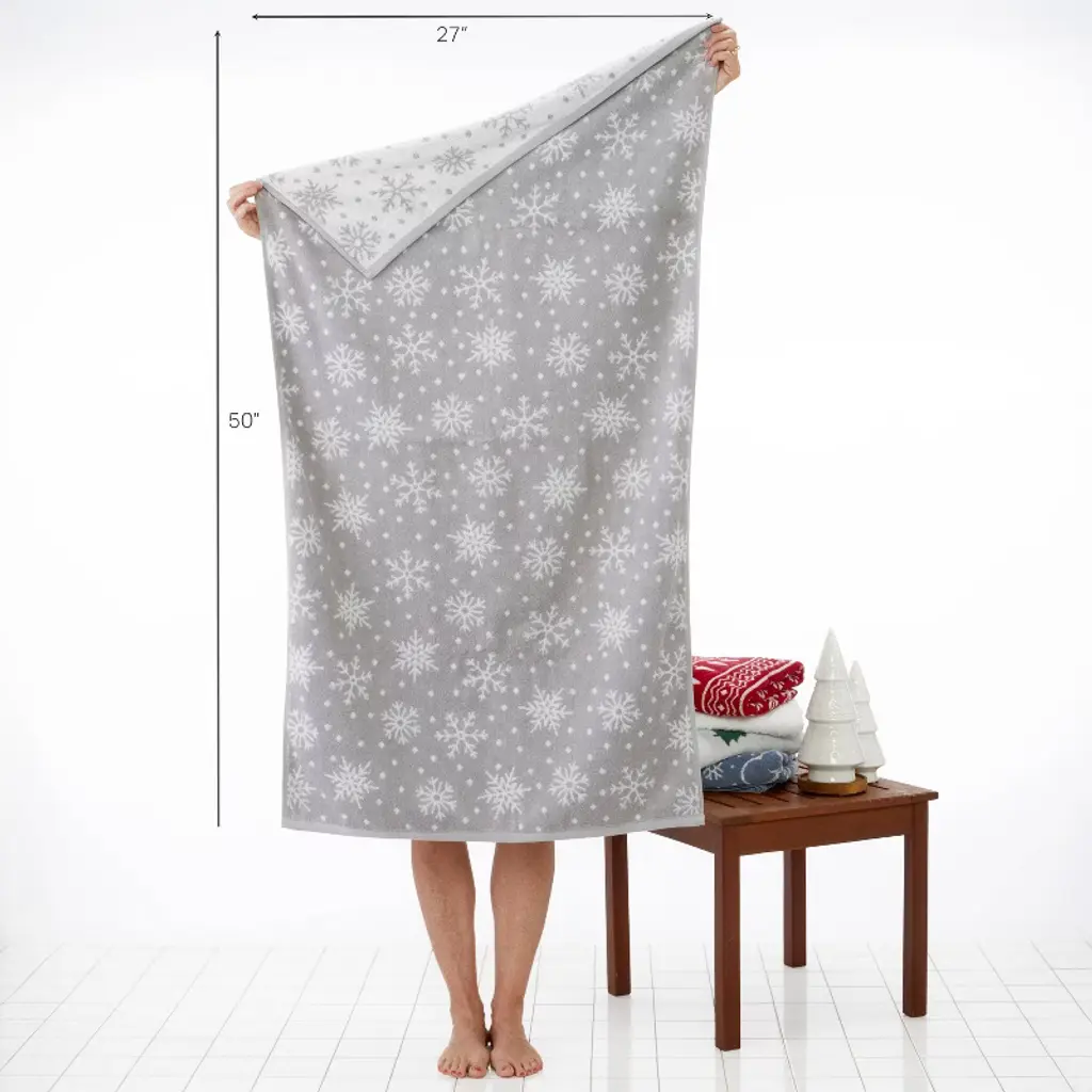 Warm up the winter season with this plush bath towel. Made of soft terry jacquard, it features a 2-tone scattered snowflake pattern with banded hem. The pattern is opposite in color on the reverse side. It can be used throughout the entire winter season. Coordinating hand towels sold separately. At SKL Home we bring personality, fun, and flair to your space with the best in home décor. We're a close-knit, small company full of big ideas in a wide variety of styles. From upbeat and modern, to classic and cozy, SKL Home has a look to complement any space. Combining 40+ years’ experience, global design inspiration, and the best fabrications, our employee-owned company continues to lead the way in home accessories.