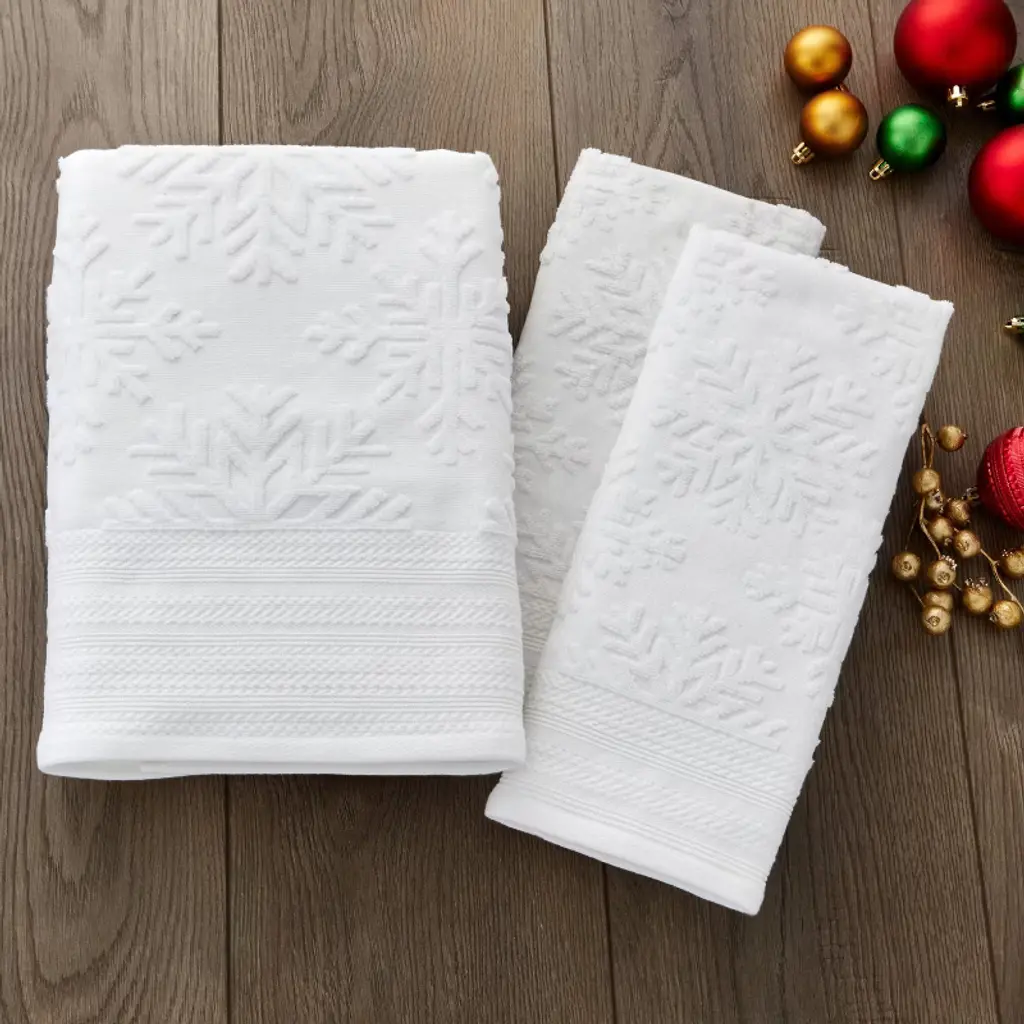 Add beauty and warmth to the winter season with this plush bath towel. Made of soft terry jacquard, it features a raised, scattered snowflake pattern with decorative banded hem. It can be used throughout the entire winter season. Coordinating hand towels sold separately. At SKL Home we bring personality, fun, and flair to your space with the best in home décor. We're a close-knit, small company full of big ideas in a wide variety of styles. From upbeat and modern, to classic and cozy, SKL Home has a look to complement any space. Combining 40+ years’ experience, global design inspiration, and the best fabrications, our employee-owned company continues to lead the way in home accessories.