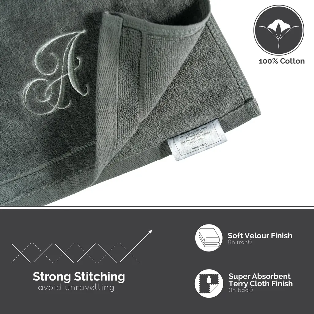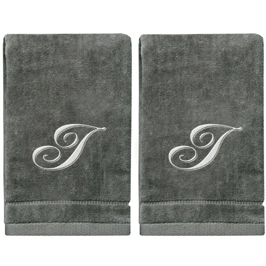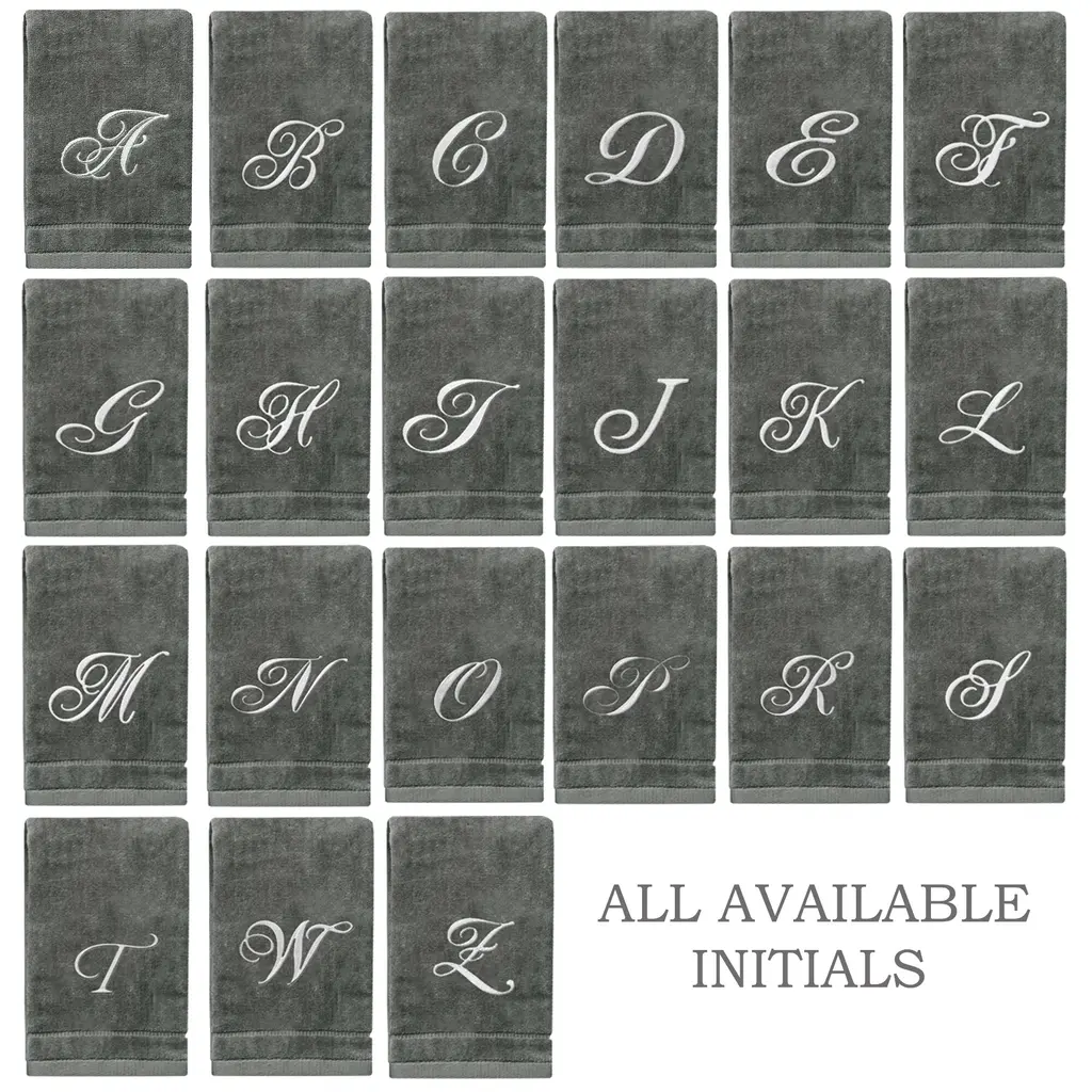 Personalized Fingertip Towels: These personalized hand towels come with most of the letters from A-Z beautifully embroidered in silver, making it the perfect gift , powder room or guest bathroom towel. Set Of 2: Enjoy unmatched value with our set of 2 monogrammed kitchen towels that are perfectly sized at 11 x 18 inches to elegantly hang on any rack. Extra Absorbent Cotton: The initialed towels are made using 100% premium cotton that is extra absorbent for quick drying of your hands, making for an ideal golf, sweat, or workout towel. Soft Velour Finish: We've complemented the cotton design of the decorative monogrammed towels with a luxurious velour finish that feels sensational on the hands and face. Easy To Clean: These fingertip towels with initials are 100% machine wash-safe, allowing you to enjoy hassle-free cleaning without any risk of damage. Click 'Add to Cart' now!