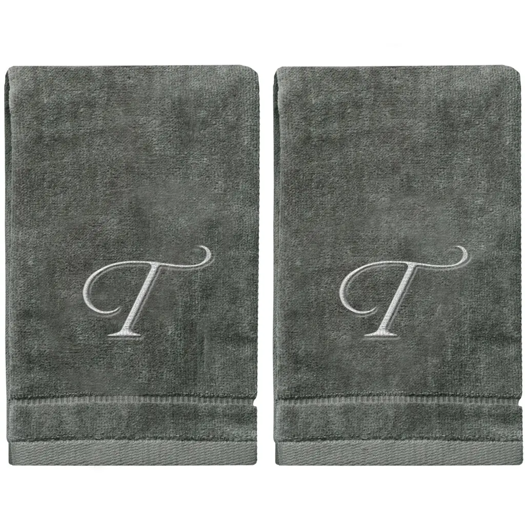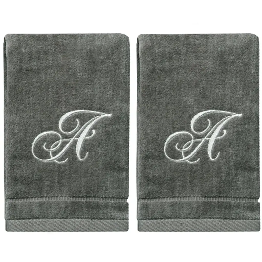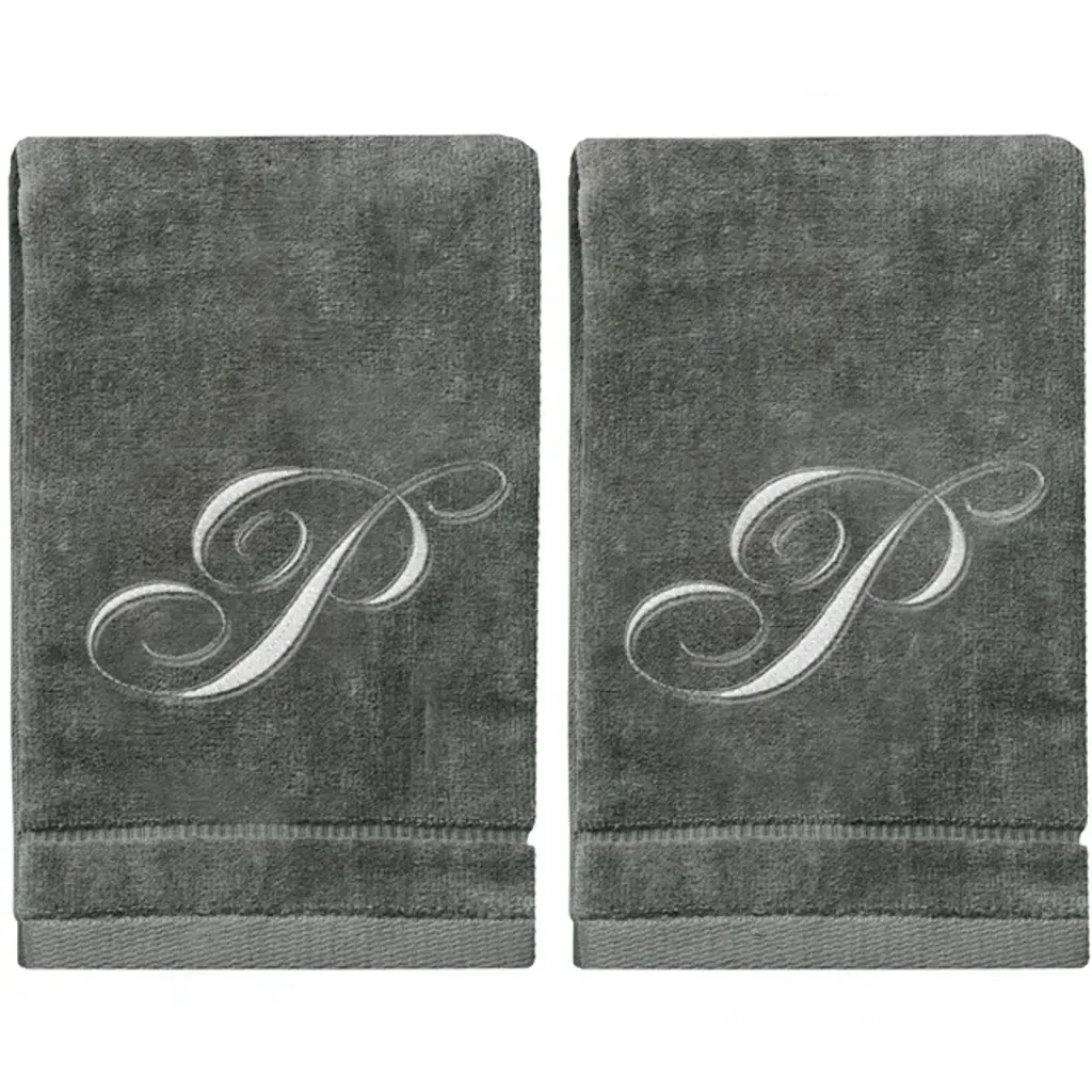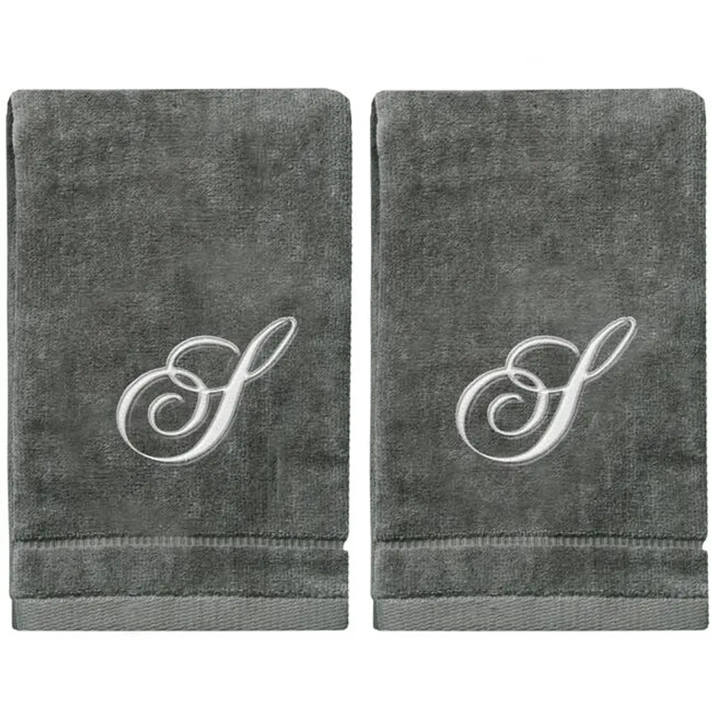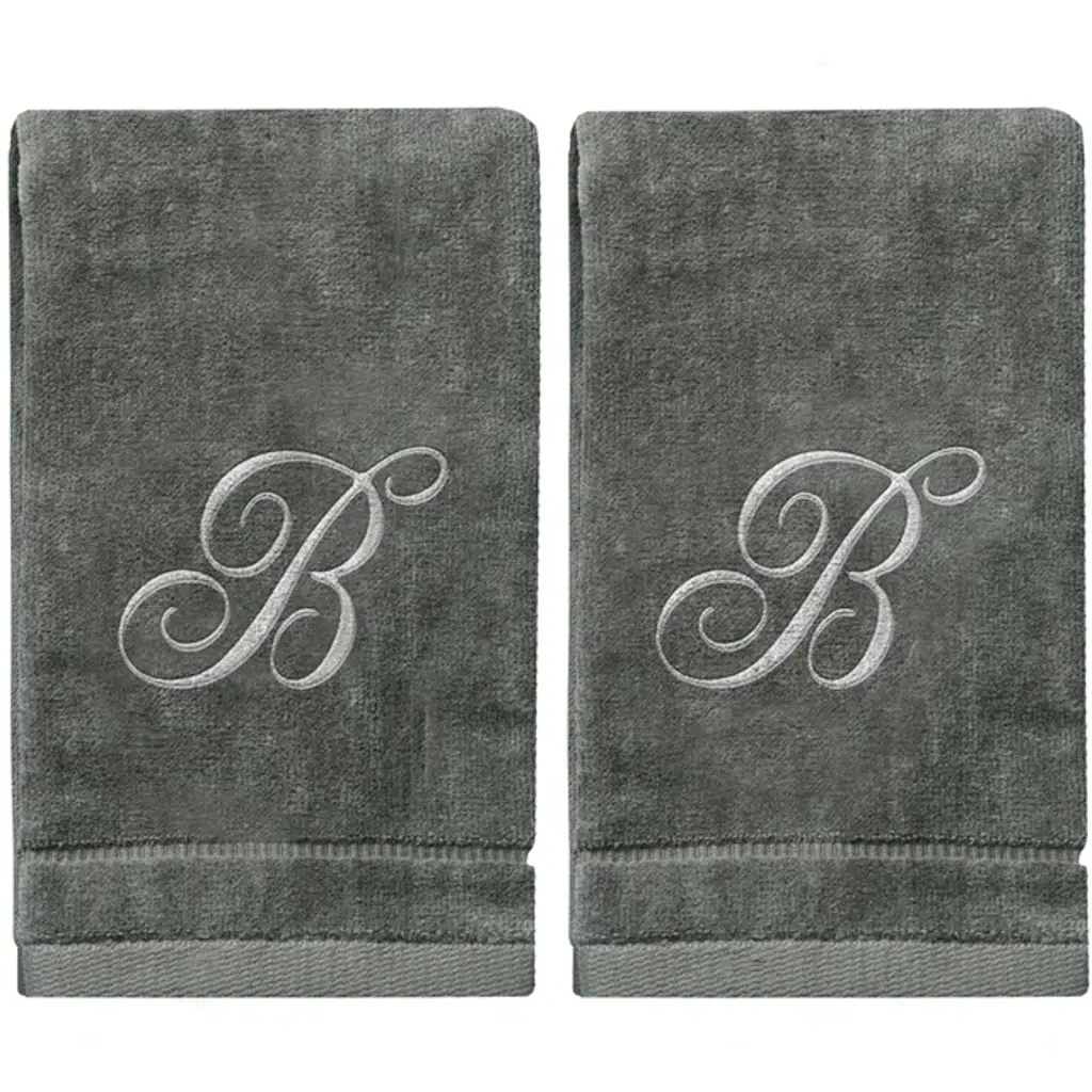 Soft Velour Silver Monogrammed Towels Fingertip - Set Of 2 - B