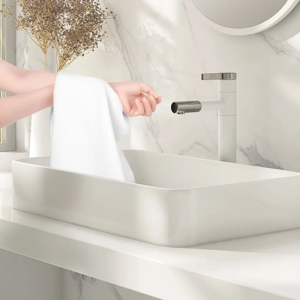 This hand towel has excellent water absorption performance, dries quickly and keeps soft and comfortable, providing you with the ultimate cleaning experience. It is suitable for use in bathrooms, kitchens, gyms and other places. It can be used to wipe the face and hands, and can also be used as a portable small towel, which is practical and convenient.Specification:>Material: 100% cotton>Type:Hand Towel>Size: 34cmx74cm /14" x 30">Colors:Light Green/White/Pink/Dark Blue/Grey>Package includes: 2 PcsTips:1. Affected by various production, devices, and brightness, actual colors may differ from online colors.2. Please allow 2-3cm manual measurement differences.