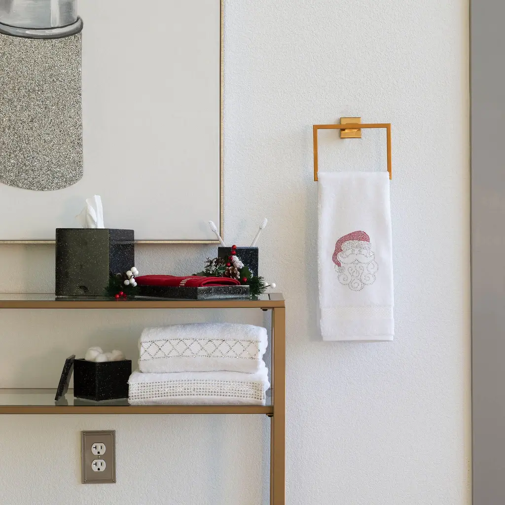 Upgrade your bathroom with our Santa Hand Towel, a festive 100% cotton accessory adorned with a sparkling Santa motif. Perfect for holiday decor or gifting, it's practical, machine-washable, and adds a touch of cheer.