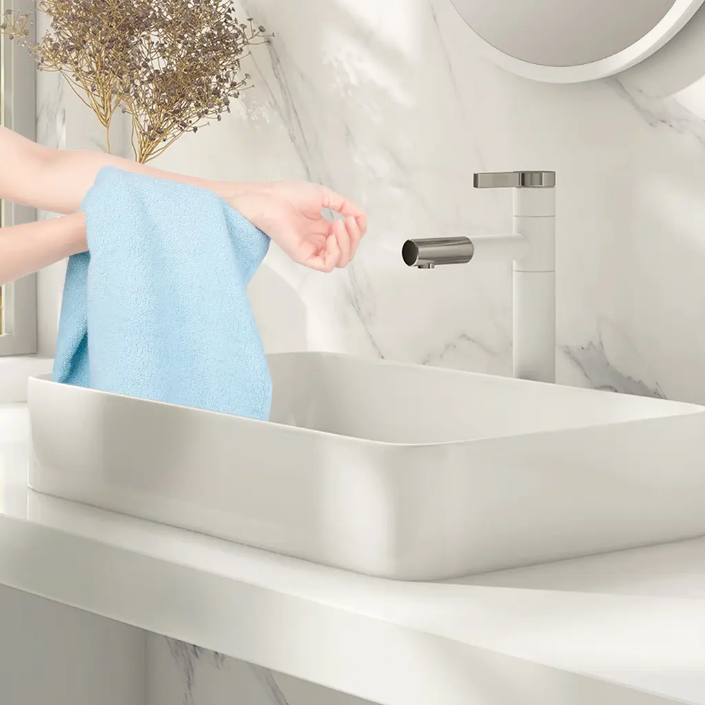 This hand towel has excellent water absorption performance, dries quickly and keeps soft and comfortable, providing you with the ultimate cleaning experience. It is suitable for use in bathrooms, kitchens, gyms and other places. It can be used to wipe the face and hands, and can also be used as a portable small towel, which is practical and convenient.Specification:>Material: 100% cotton>Type:Hand Towel>Size: 34cmx74cm /14" x 30">Colors:Pink/Light Blue/Brown/Grey>Package includes: 2 Pcs/4 PcsTips:1. Affected by various production, devices, and brightness, actual colors may differ from online colors.2. Please allow 2-3cm manual measurement differences.