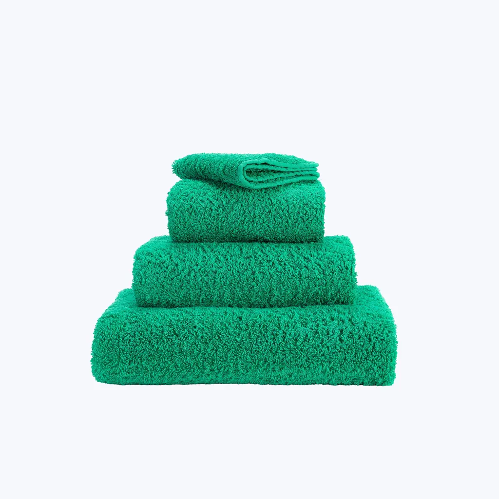 Super Pile Bath Towels are made from the finest 100% Giza Extra Long Staple Egyptian Cotton that's only grown in one small area of the Nile Delta. At 700 gsm, these bath towels are super absorbent, have a luxurious spa-like softness, and dry quicker courtesy of their longer loop with more surface area. The Super Pile Towel is finished with signature trim and rounded corners with discreet dyed labels to match this colorful emerald green towel. Elevate your bathing ritual to an art using Abyss and Habidecor. Made in northern Portugal for over 40 years, these high-quality luxury bath linens are made from the softest Egyptian cotton from Giza.