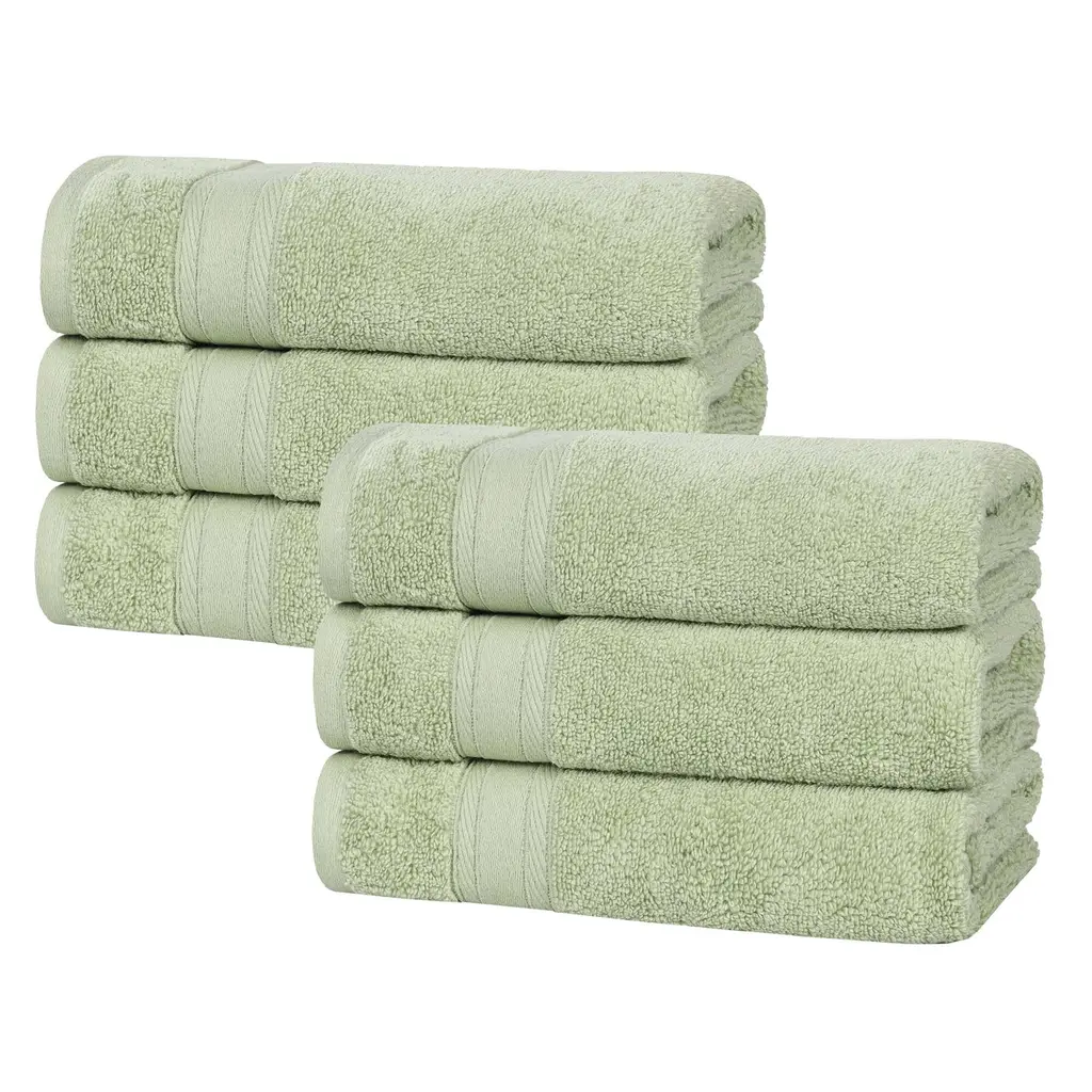 Superior Belmont Zero Twist Cotton Medium Weight Absorbent Hand Towels, Set Of 6 - Green