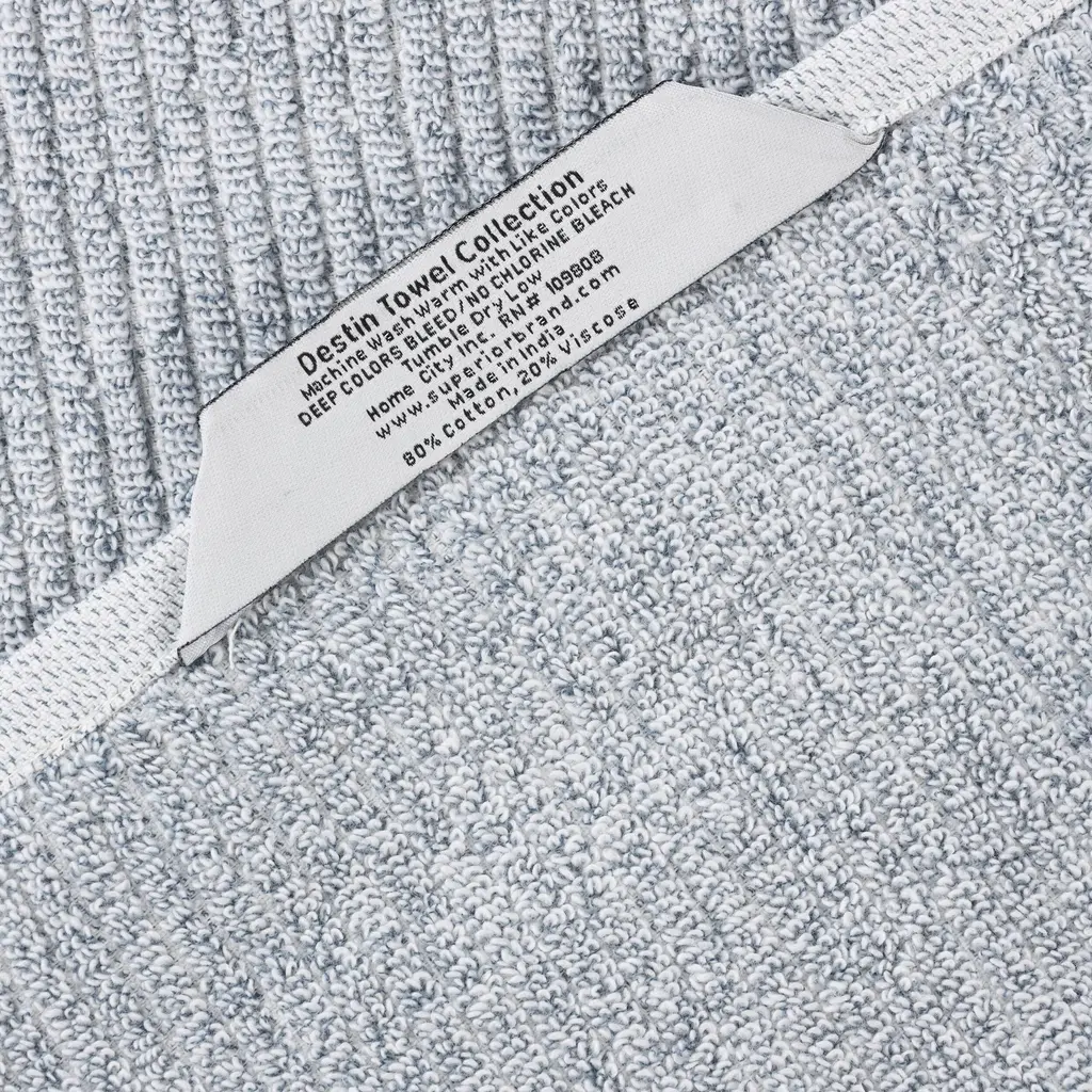 Upgrade your towel collection with the stylish and functional Superior Destin Viscose Cotton Blend Hand Towel Set. Crafted from 80% cotton and 20% viscose, these towels provide exceptional softness and absorbency while showcasing a unique aesthetic. The sleek, plain ribbed texture adds an eye-catching element that elevates any bathroom. Available in a diverse palette of elegant colors, this set allows you to personalize your space with style. With a soft medium towel weight, these towels are durable and quick drying. Let them transform your bathroom into a serene haven of style and functionality.Features: