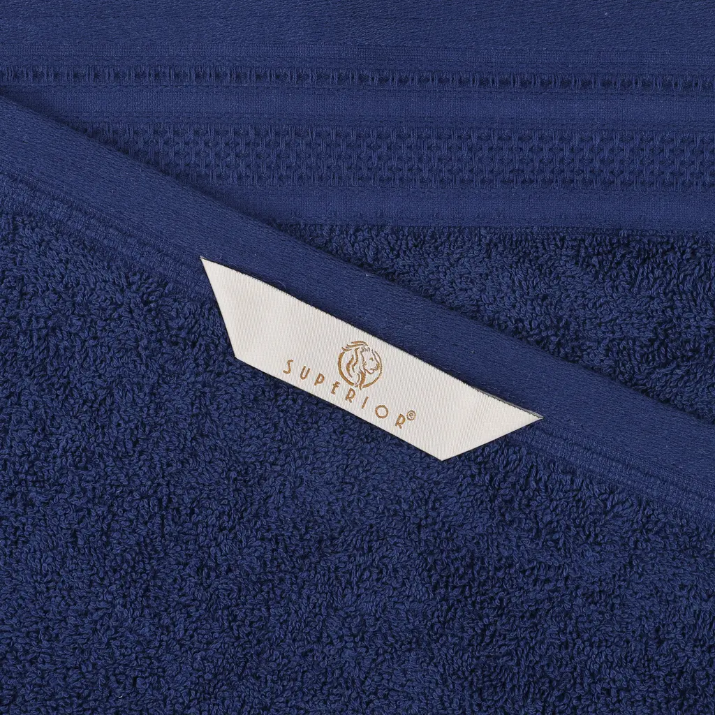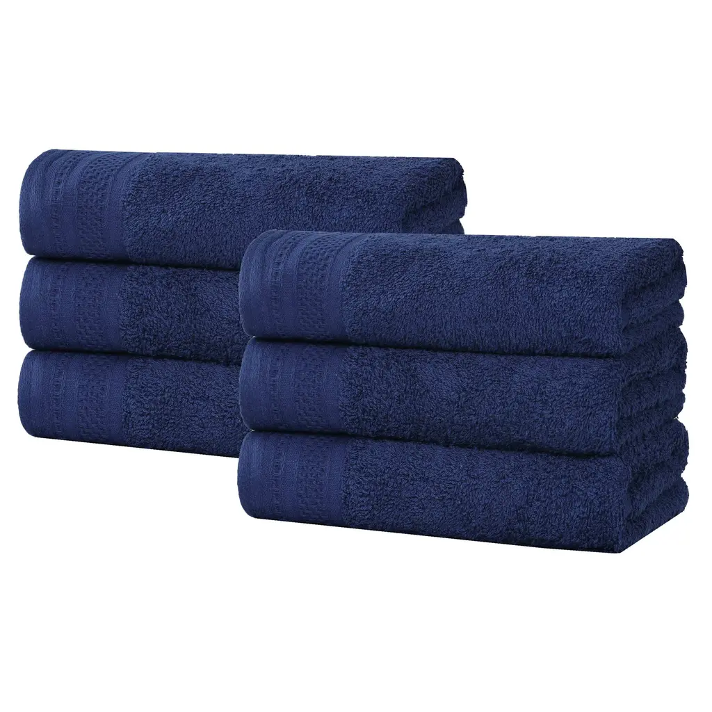 Superior Honeycomb Textured Border Cotton Medium Weight Hand Towels, Set Of 6 - Navy Peony