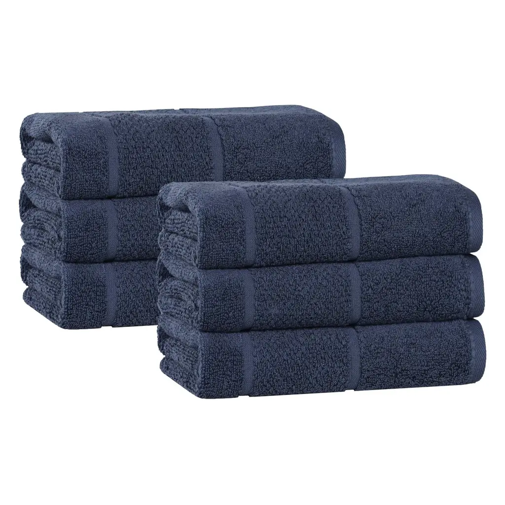 Superior Mile Smart Twist Viscose Cotton Blend Hand Towels, Set Of 6 - Navy Blue