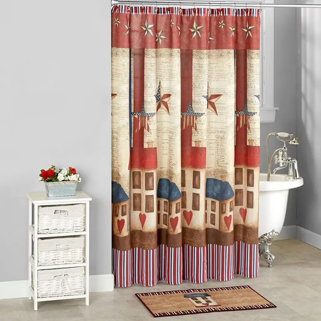 Transform your bathroom into a cozy farmhouse retreat with the Sweet Home Americana Bathroom Collection. This set includes two hand towels, each showcasing a charming rustic red, white, and blue color scheme. Crafted from 100% cotton, these towels are not only soft and absorbent but also durable and easy to care for. Simply machine wash and tumble dry for convenience. Add a touch of rustic elegance to your bathroom décor with this delightful collection.