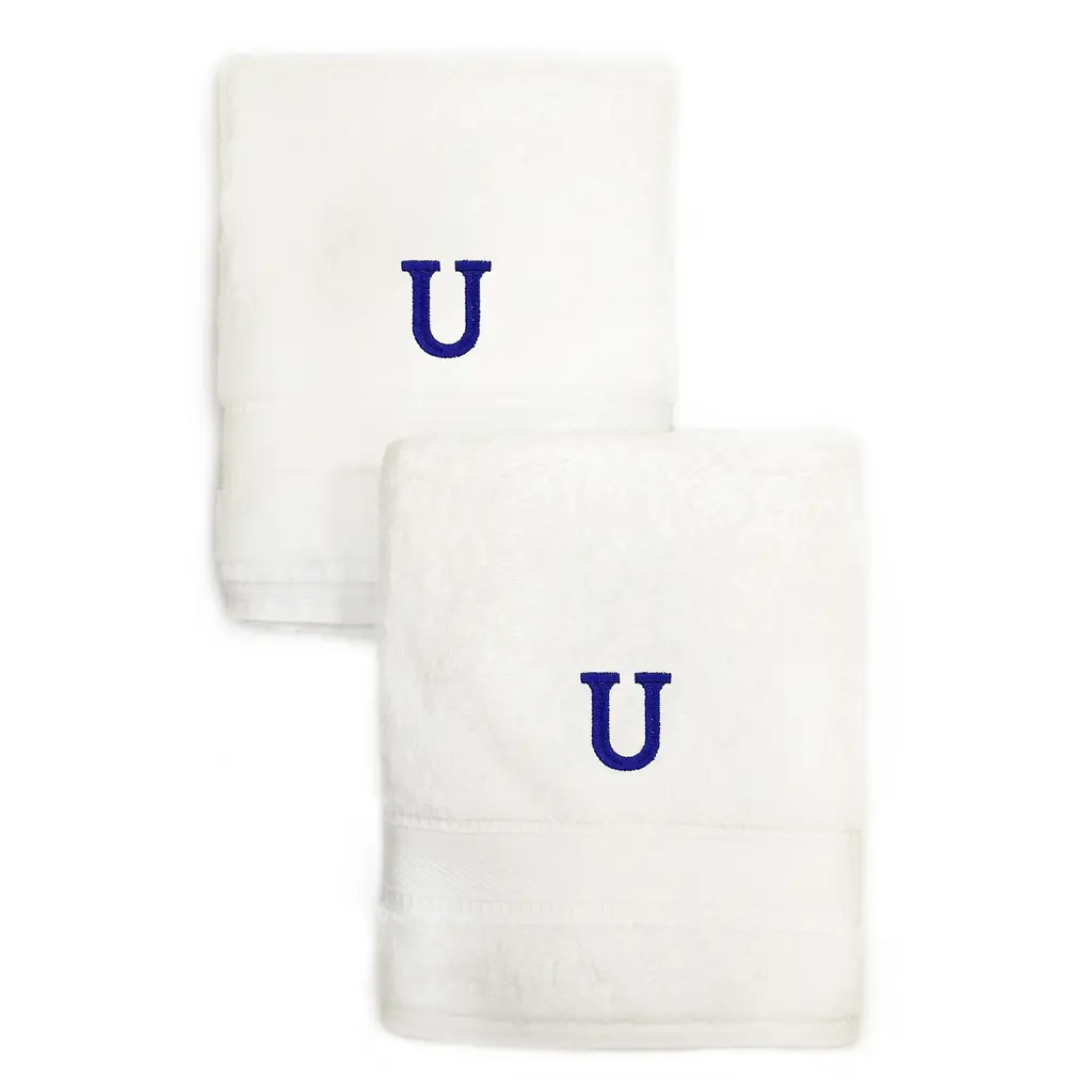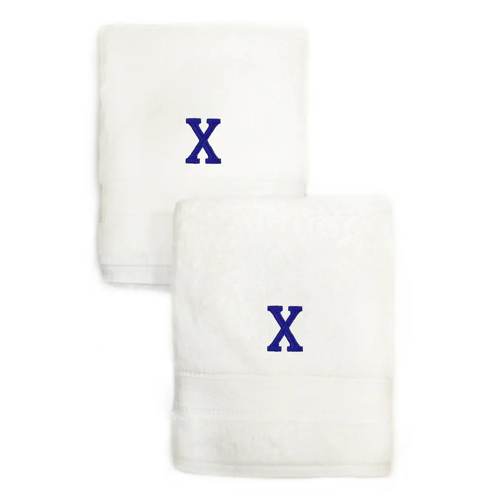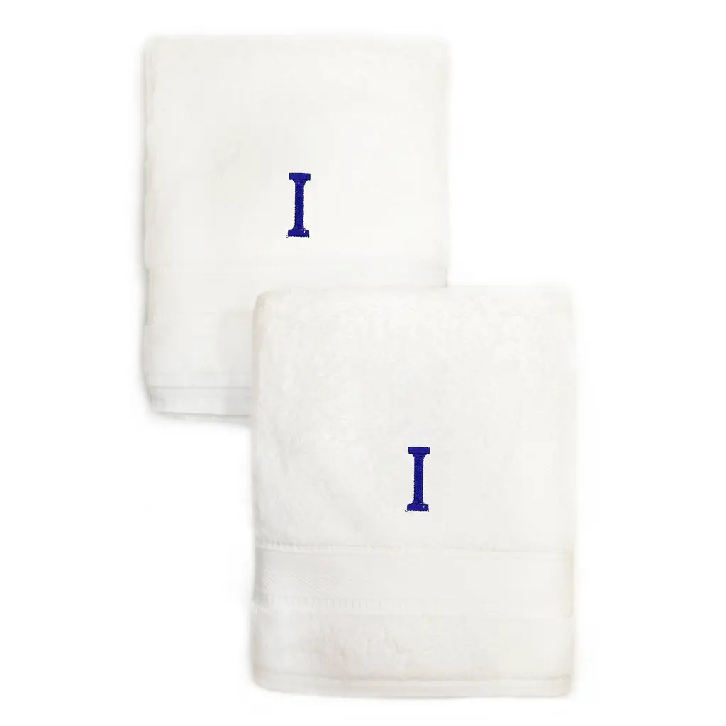 Sweet Kids 2-Piece White Turkish Cotton Hand Towels With Royal Blue Monogrammed Initial - White/a