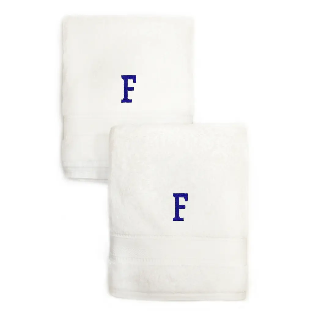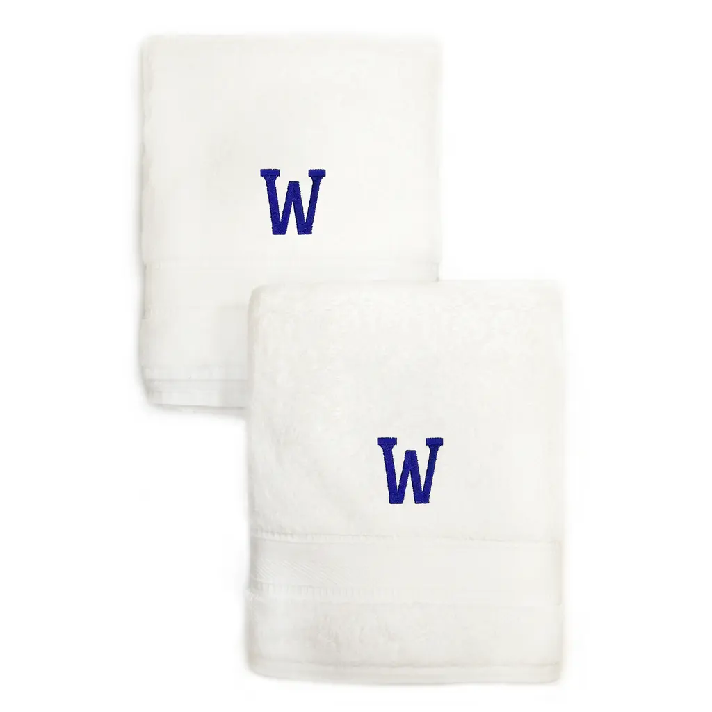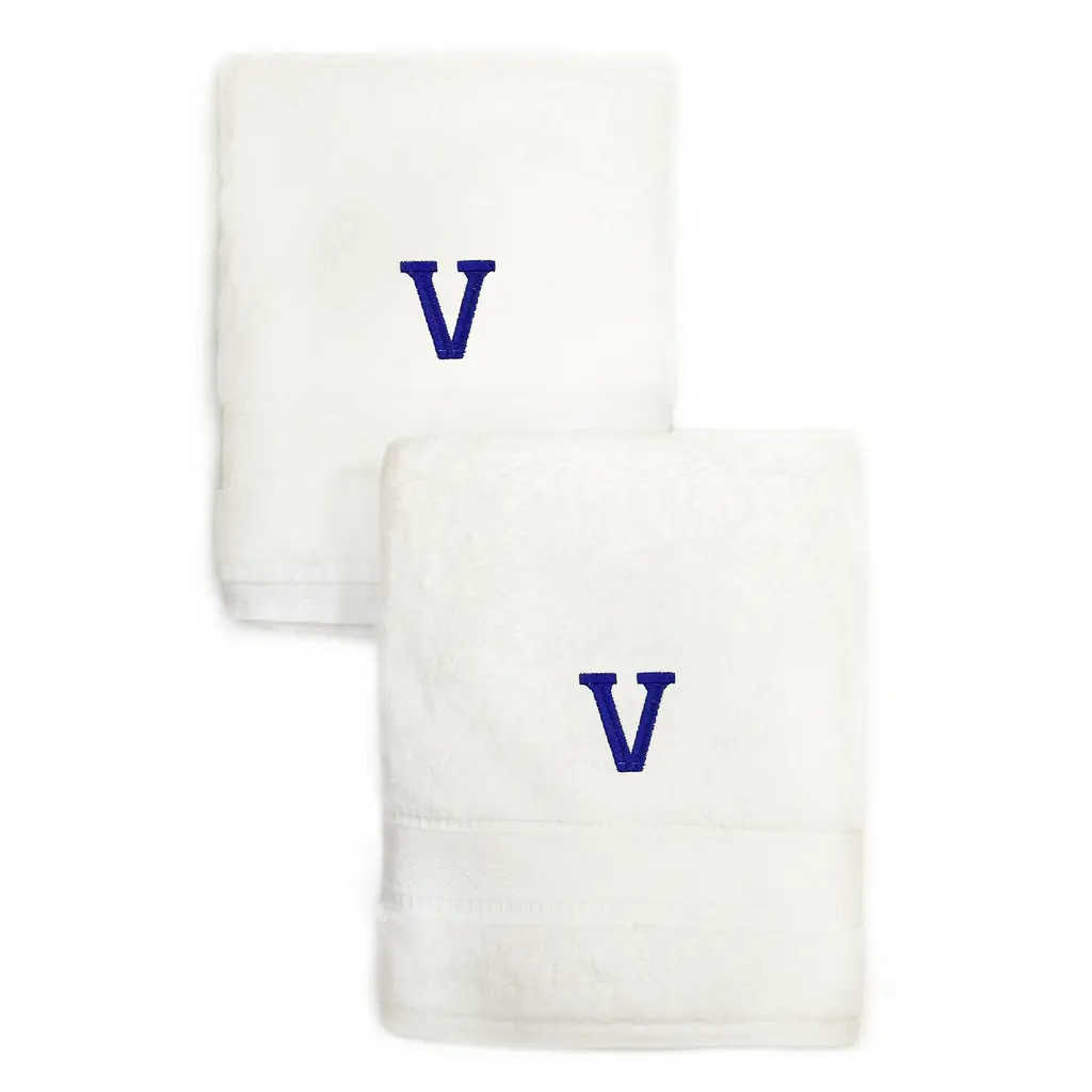 Sweet Kids 2-Piece White Turkish Cotton Hand Towels With Royal Blue Monogrammed Initial - White/a