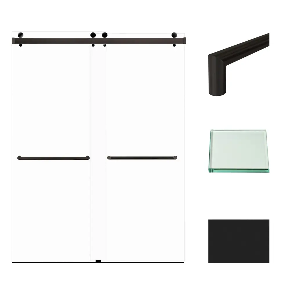 The Transolid Brooklyn frameless double sliding shower door collection offers an elegant, sophisticated look. It is available in 60 in. W x 80 in. H and features thick, premium 3/8 in. (10mm) clear tempered glass with professionally applied Nano clear glass coating, which provides superior dirt and water repellant and stain resistant benefits. The Brooklyn door provides up to 3/8 in. of out-of-plumb adjustability on each side to provide a watertight fit in your alcove. The Brooklyn door is available in several desirable hardware finish options to match your bathroom's interior design and layout perfectly. Built for an alcove (3-wall) shower enclosure, sliding glass shower doors can be opened from left or right with its full by-pass (both panels slide) design. 20 in. (500 mm from center to center) sliding shower door handles also function as towel bars, providing handy storage space for a folded bath towel or two hand towels. Multiple Transolid handle options are available, but this combination features the Barrington Knurled handles. The Barrington Knurled handles feature a unique, high-end design, adding a distinctive look to your Brooklyn shower door. These handles are substantial in weight and are every bit as functional as they are beautiful. Look for the matching grab bar to complete the look!Transolid BYPT608010L-BK Features: