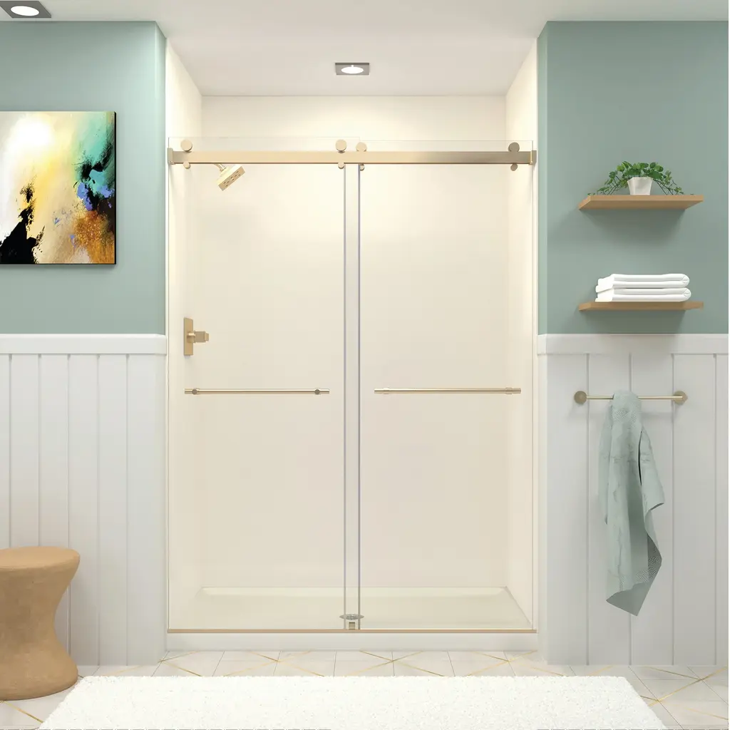 Transolid Bypt608010l-Bk Brooklyn 80" High X 60" Wide Bypass Frameless - Brushed Stainless