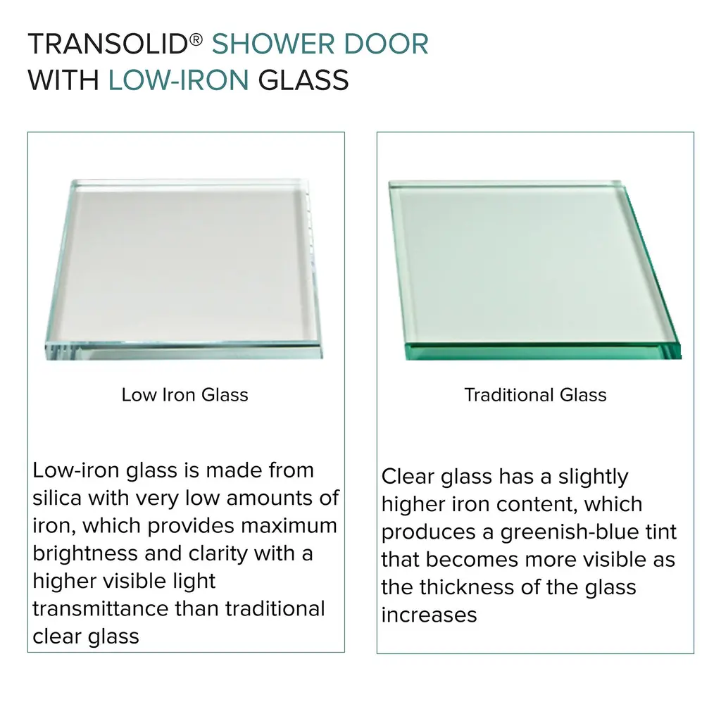 The Transolid Eden Semi-Frameless By-Pass Shower Door Collection offers an elegant, sophisticated look. It is available in 60 in. W x 80 in. H and features thick, premium 3/8 in. (10mm) low iron tempered glass with professionally applied Nano clear glass coating, which provides superior dirt and water repellant and stain resistant benefits. TruMotion® technology makes our shower doors close softly and effortlessly no matter how hard you slam them or how heavy they are and the Eden door provides up to 3/8 in. of out-of-plumb adjustability on each side to provide a watertight fit in your alcove. The Eden Door is available in several desirable hardware finish options to match your bathroom's interior design and layout perfectly. Built for an alcove (3-wall) shower enclosure, sliding glass shower doors can be opened from left or right with its full by-pass (both panels slide) design. 20 in. (500 mm from center to center) sliding shower door handles also function as towel bars, providing handy storage space for a folded bath towel or two hand towels. Multiple Transolid handle options are available, but this combination features the Riley handles. The Riley handles feature a unique, high-end design, adding a distinctive look to your Eden shower door. These handles are substantial in weight and are every bit as functional as they are beautiful. Look for the matching grab bar to complete the look!Transolid EBPT608010L-R Features: