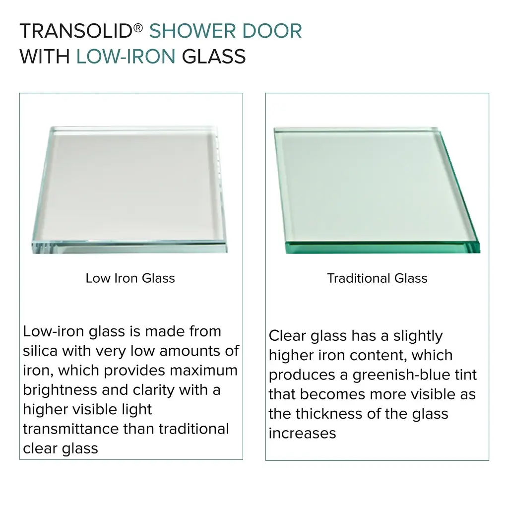 The Transolid Eden Semi-Frameless By-Pass Shower Door Collection offers an elegant, sophisticated look. It is available in 60 in. W x 80 in. H and features thick, premium 3/8 in. (10mm) low iron tempered glass with professionally applied Nano clear glass coating, which provides superior dirt and water repellant and stain resistant benefits. TruMotion® technology makes our shower doors close softly and effortlessly no matter how hard you slam them or how heavy they are and the Eden door provides up to 3/8 in. of out-of-plumb adjustability on each side to provide a watertight fit in your alcove. The Eden Door is available in several desirable hardware finish options to match your bathroom's interior design and layout perfectly. Built for an alcove (3-wall) shower enclosure, sliding glass shower doors can be opened from left or right with its full by-pass (both panels slide) design. 20 in. (500 mm from center to center) sliding shower door handles also function as towel bars, providing handy storage space for a folded bath towel or two hand towels. Multiple Transolid handle options are available, but this combination features the Sabrina handles. The Sabrina handles feature a unique, high-end design, adding a distinctive look to your Eden shower door. These handles are substantial in weight and are every bit as functional as they are beautiful. Look for the matching grab bar to complete the look!Transolid EBPT608010L-S Features: