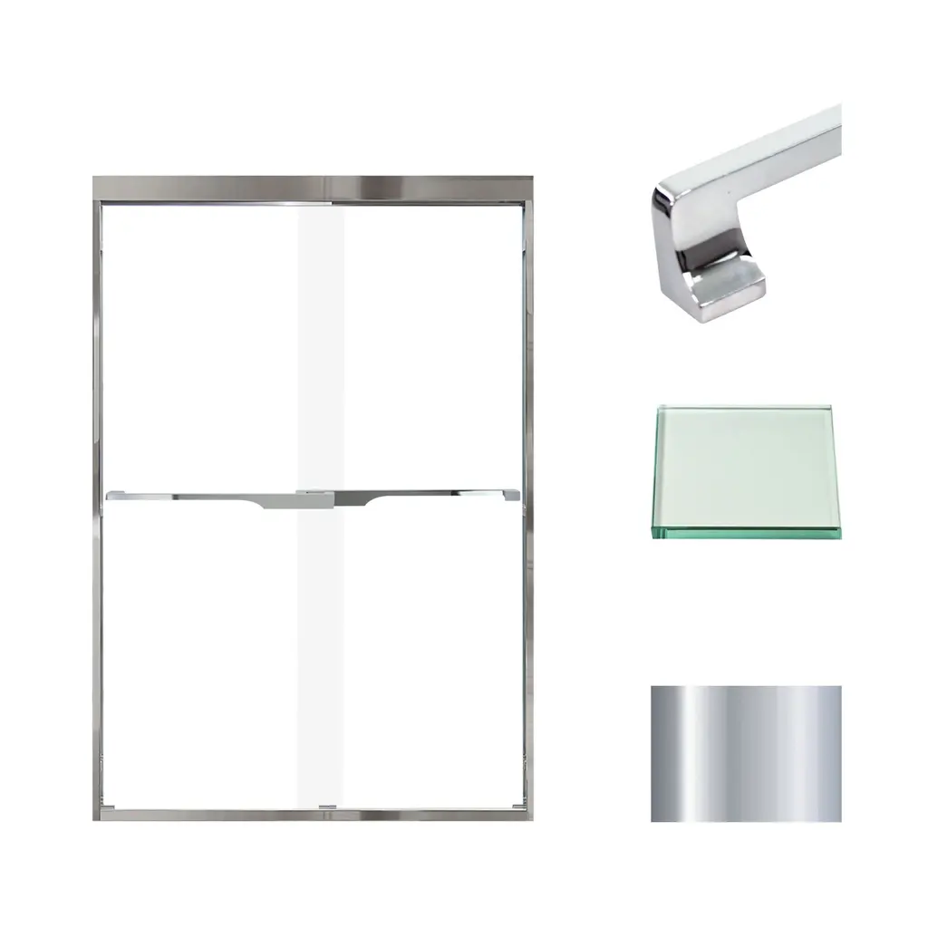 The Transolid Frederick Semi-Frameless By-Pass Shower Door Collection combines the practicality of a space saving design with custom quality craftsmanship. The collection features thick, premium 5/16 in. (8mm) clear tempered glass with professionally applied Nano clear glass coating, which provides superior dirt and water repellant and stain resistant benefits. TruMotion® technology makes our shower doors close softly and effortlessly no matter how hard you slam them or how heavy they are and the Frederick door provides up to 2/5 in. of out-of-plumb adjustability on each side to provide a watertight fit in your alcove. The Frederick Door is available in a wide array of width and height options with several desirable hardware finish options to match your bathroom's interior design and layout perfectly. Built for an alcove (3-wall) shower enclosure, sliding glass shower doors can be opened from left or right with its full by-pass (both panels slide) design. 20 in. (500 mm from center to center) sliding shower door handles also function as towel bars, providing handy storage space for a folded bath towel or two hand towels. Multiple Transolid handle options are available, but this combination features the rustic Justin handles. The Justin handles are part of the Diamond series and feature a unique, high-end design, adding a distinctive look to your Frederick shower door. These handles are substantial in weight and are every bit as functional as they are beautiful. Look for the matching grab bar to complete the look!Transolid FBPT487608C-J Features: