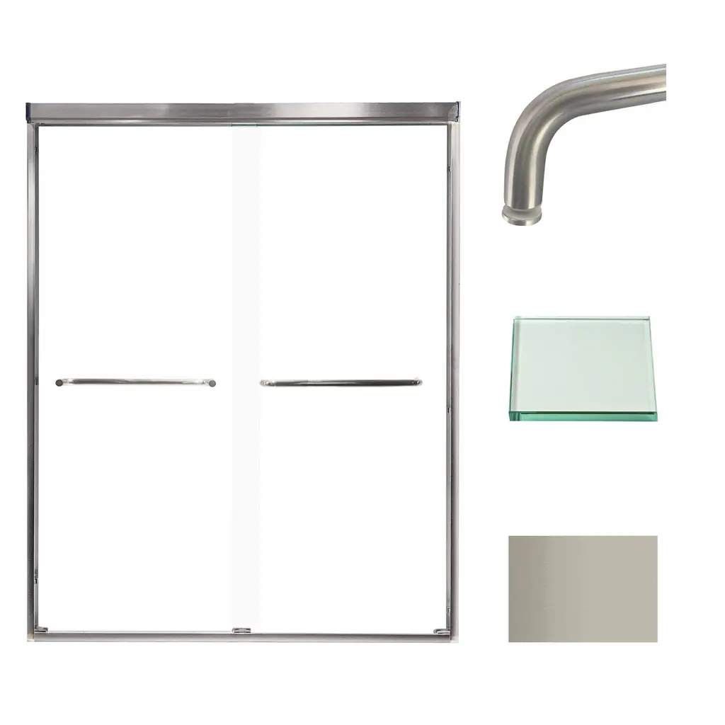 Transolid Fbpt607008c-T 70" High X 59" Wide Bypass Frameless Shower - Brushed Stainless